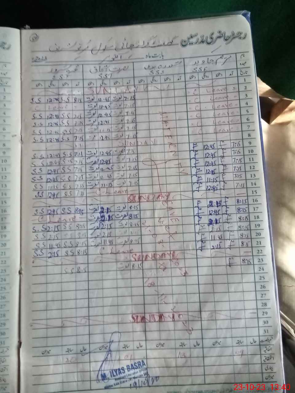 | CNIC | Full Name | Designation | R/C | Absence During Last Calender Month |