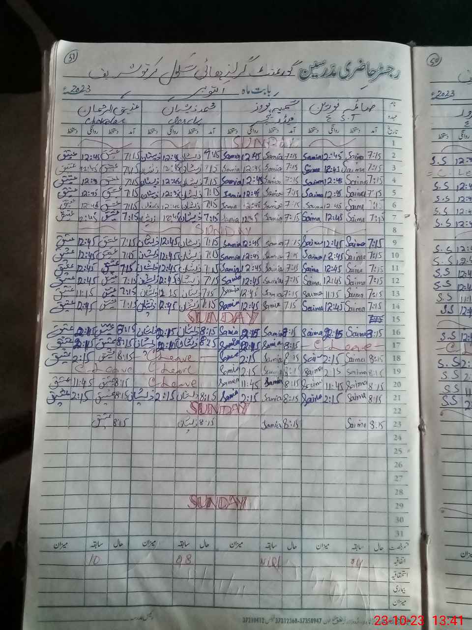 | Leave | Duty | Absent | Maternity | Medical | Ex- Pak |