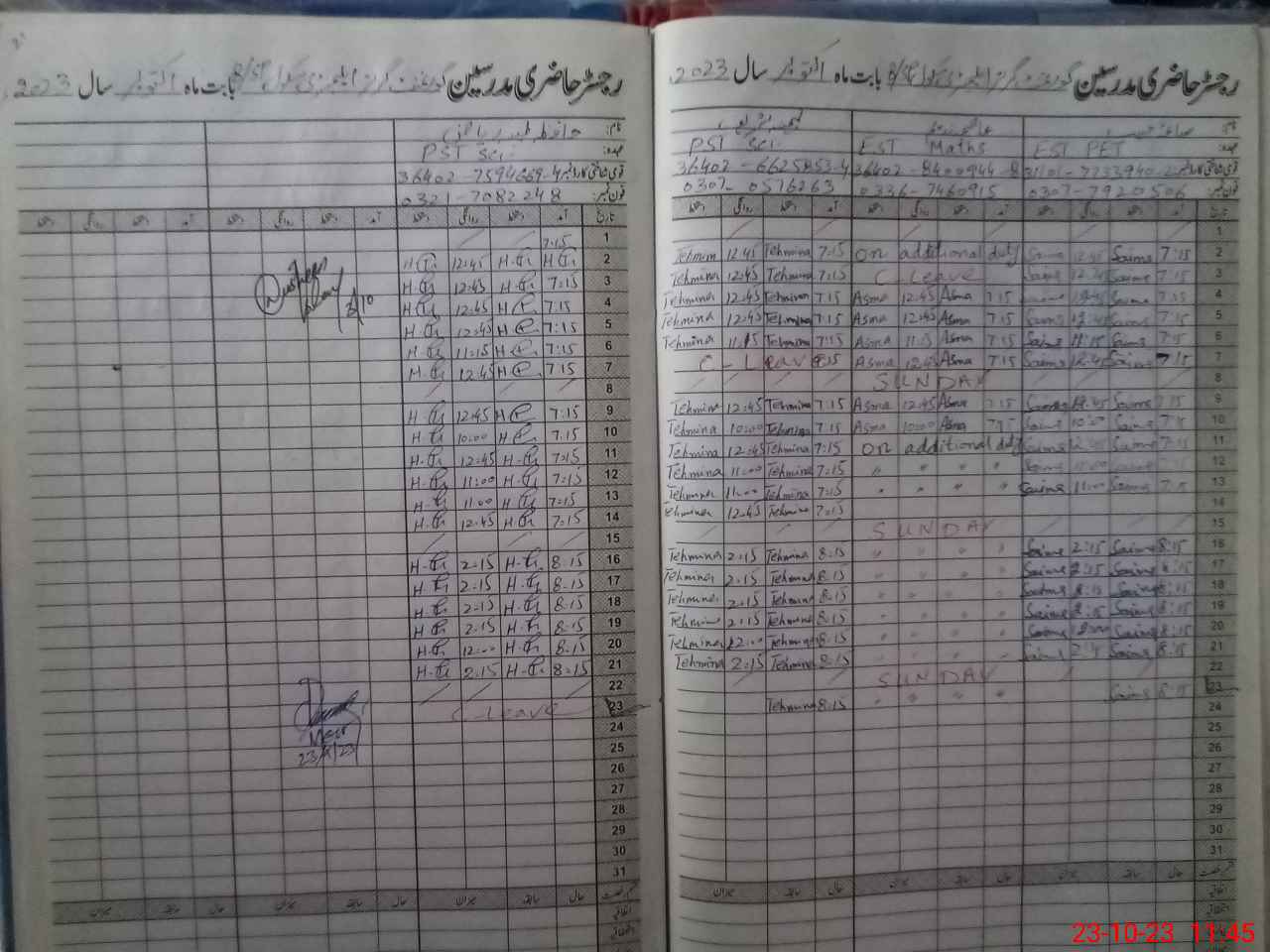 | Name: Gh**** Fa**** Designation: (School Headmaster's/Headmistress's) SST Science Phone/Cell Number: 03**** |