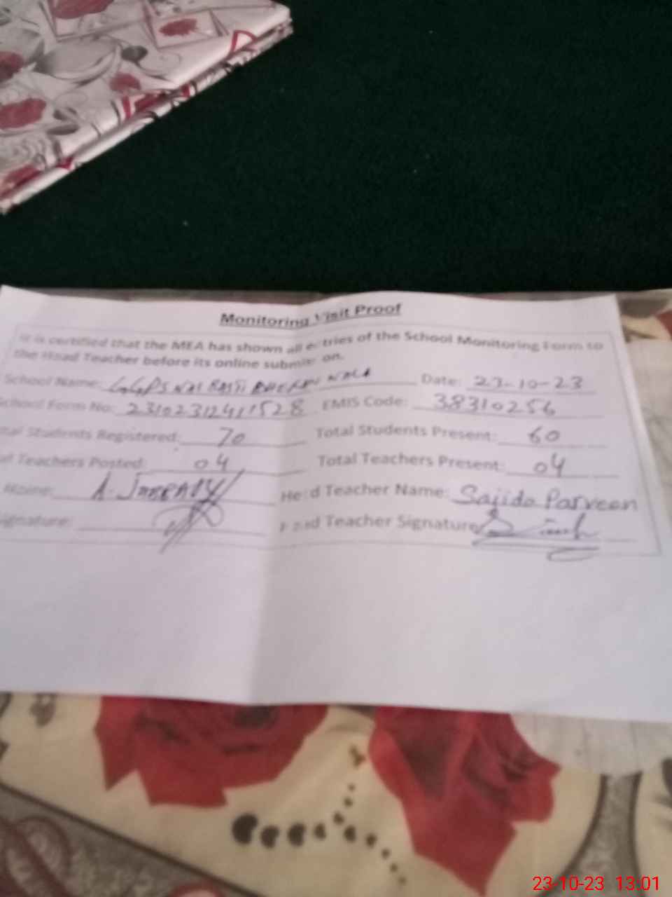 | Certified that this School was Inspected by the Undersigned MEA/DMO Today and the Information Stated Above is as Per Record. | |||||