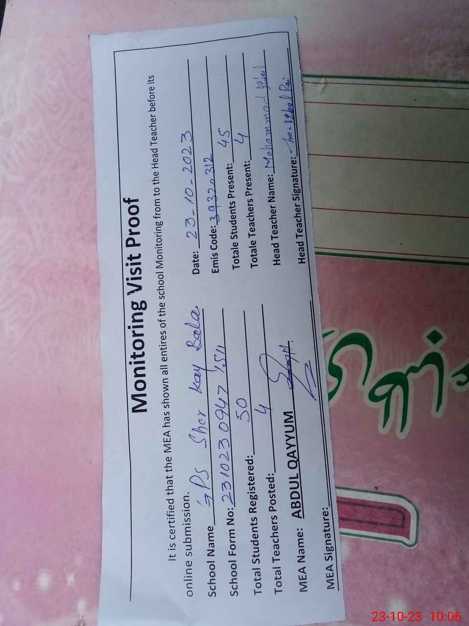 | EMIS Code: 39320312 | Name of School: GPS SHER KAY BALA | |||