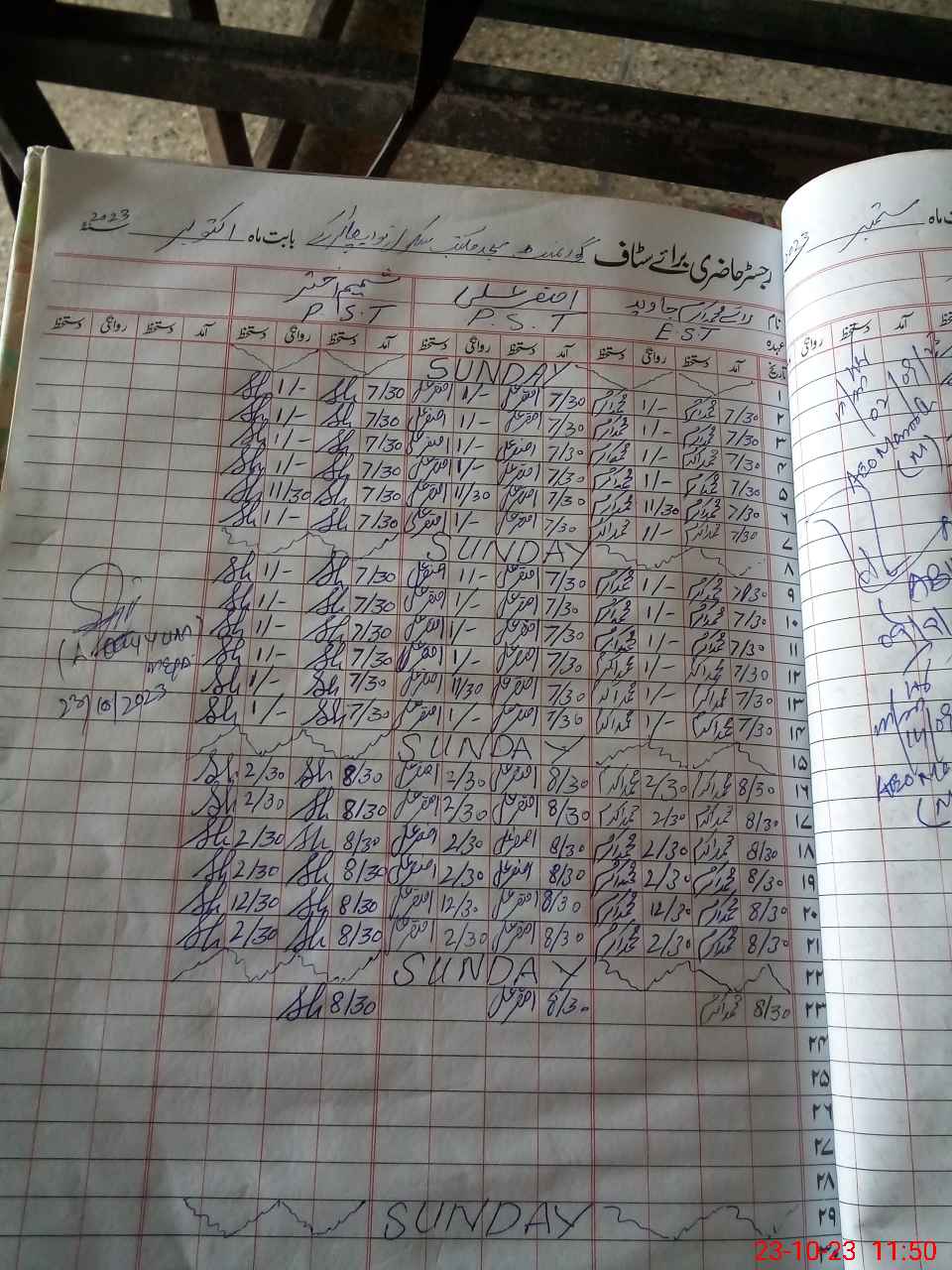 | CNIC | Full Name | Designation | R/C | Absence During Last Calender Month |