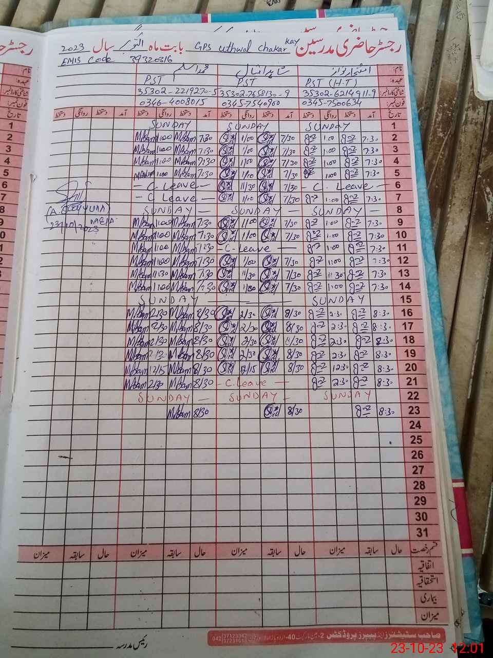 | EMIS Code: 39320316 | Name of School: GPS UTHWAL CHAKAR KAY | |||
