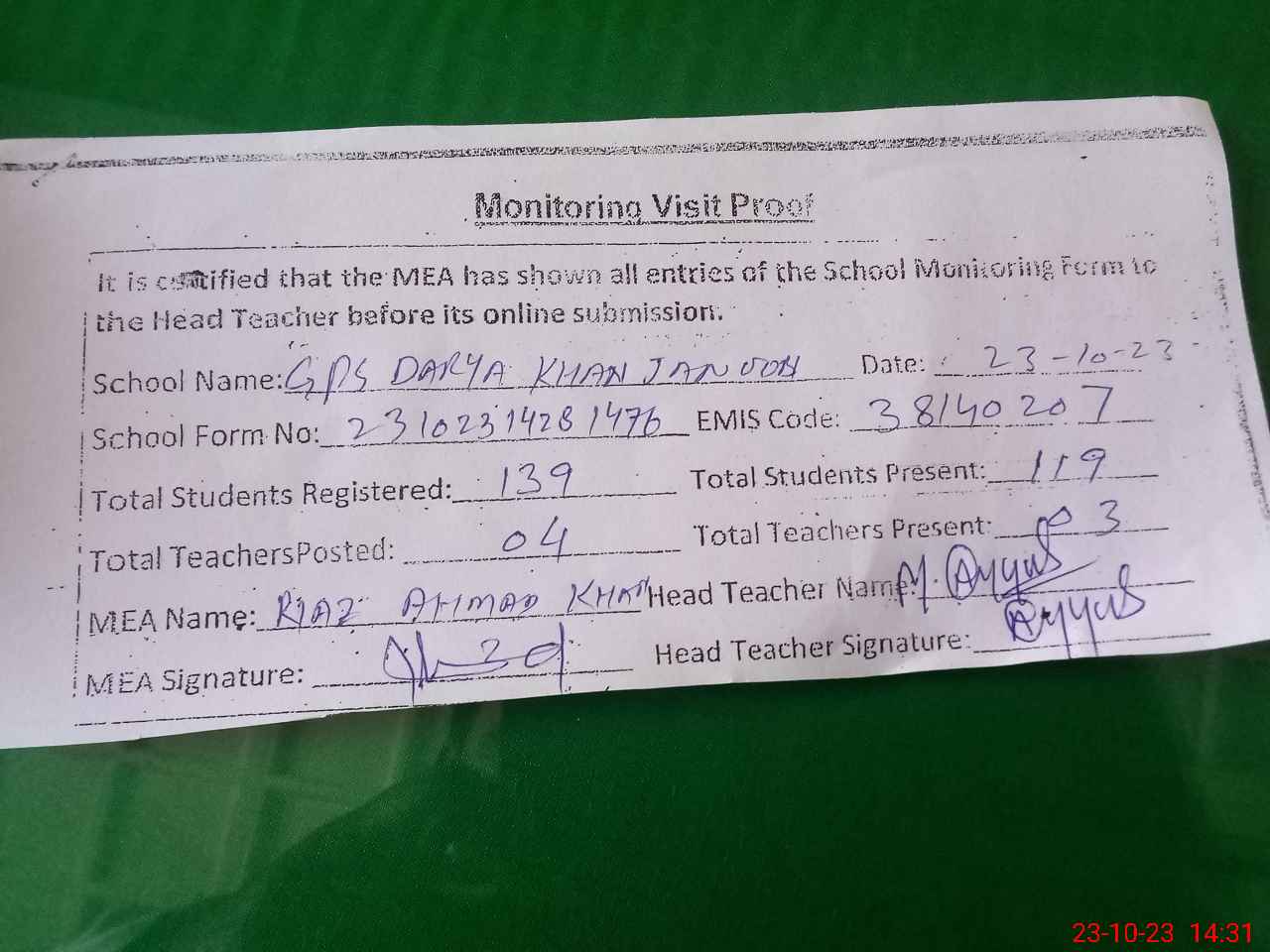 | EMIS Code: 38140207 | Name of School: GPS DARYA KHAN JANOOBI | |||
