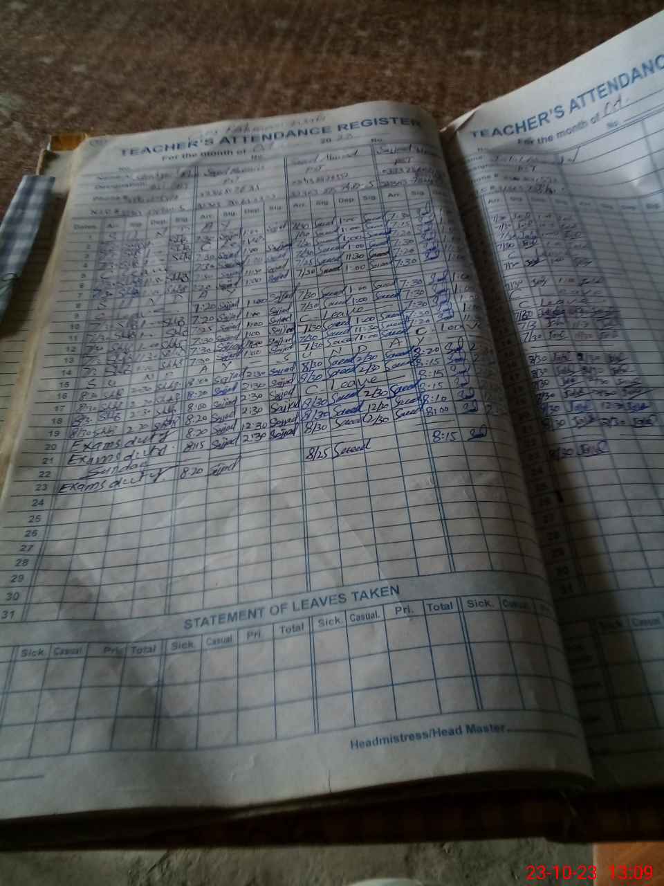 | 32**** | Mu**** Sh**** Ra**** Kh**** | 1 | 1 | 0 | 0 | 0 | 0 | 0 | 0 | 0 | 0 | 0 | Exam Duty |