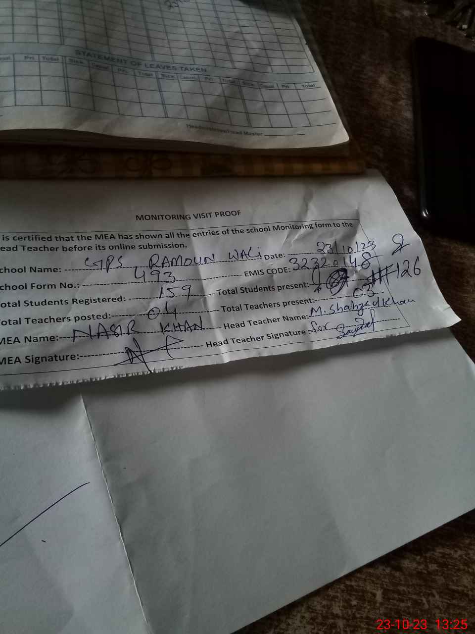| EMIS Code: 32320148 | Name of School: GPS RAHMOON WALI | |||