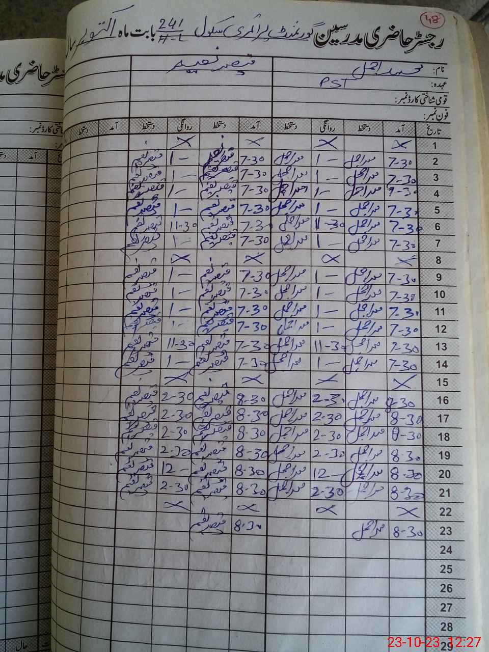| Name: MU**** AJ**** Designation: (School Headmaster's/Headmistress's) PST Phone/Cell Number: 03**** |