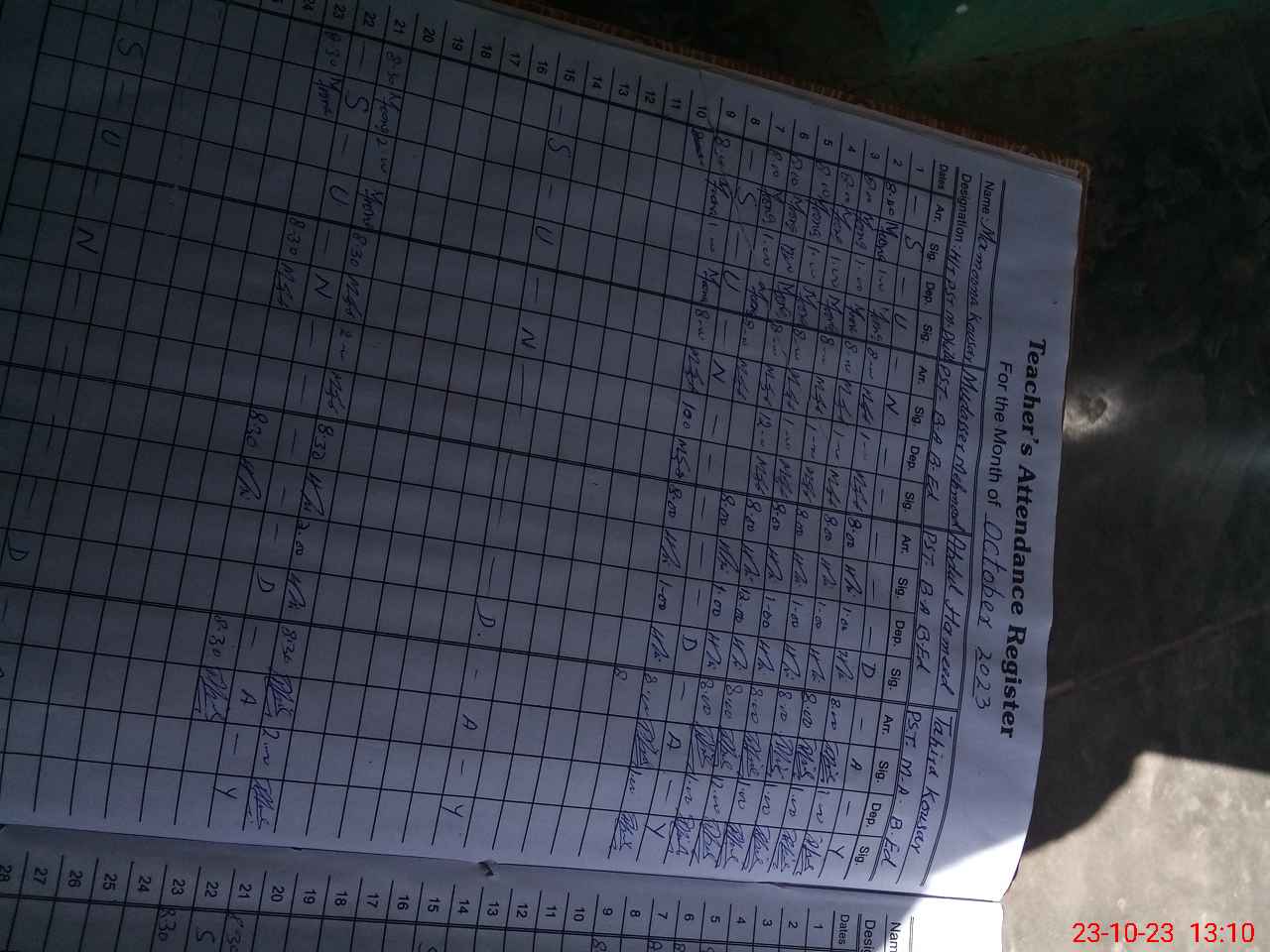 | Name: ME**** KO**** Designation: (School Headmaster's/Headmistress's) PST Phone/Cell Number: 03**** |