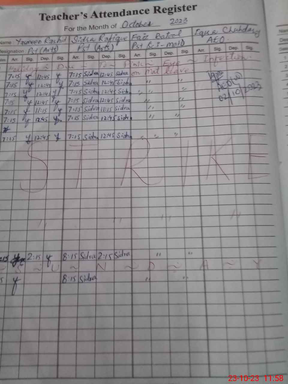 | CNIC | Full Name | Designation | R/C | Absence During Last Calender Month |