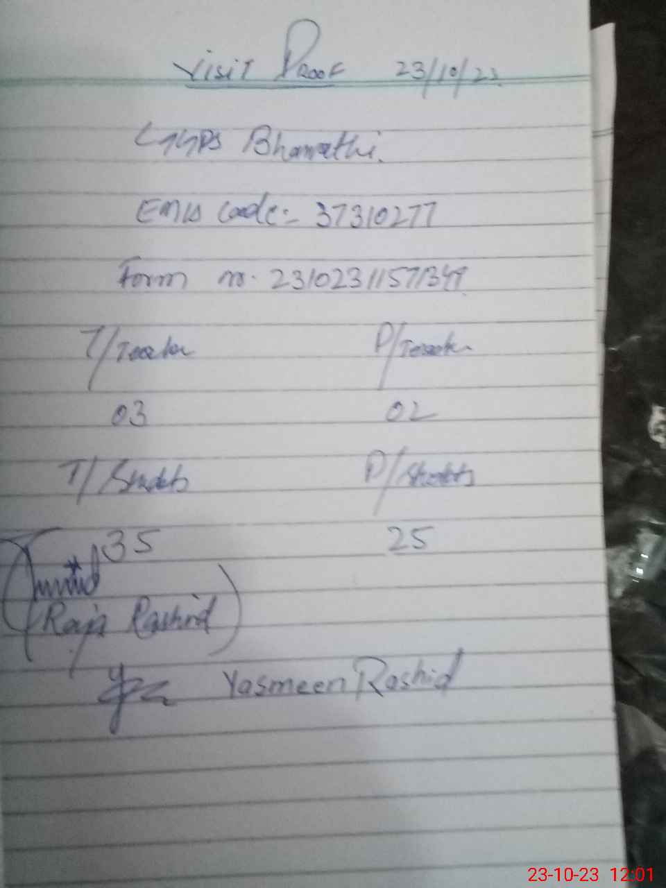 | Attendance Register | Head Teacher | MEA with School | Visit Proof |