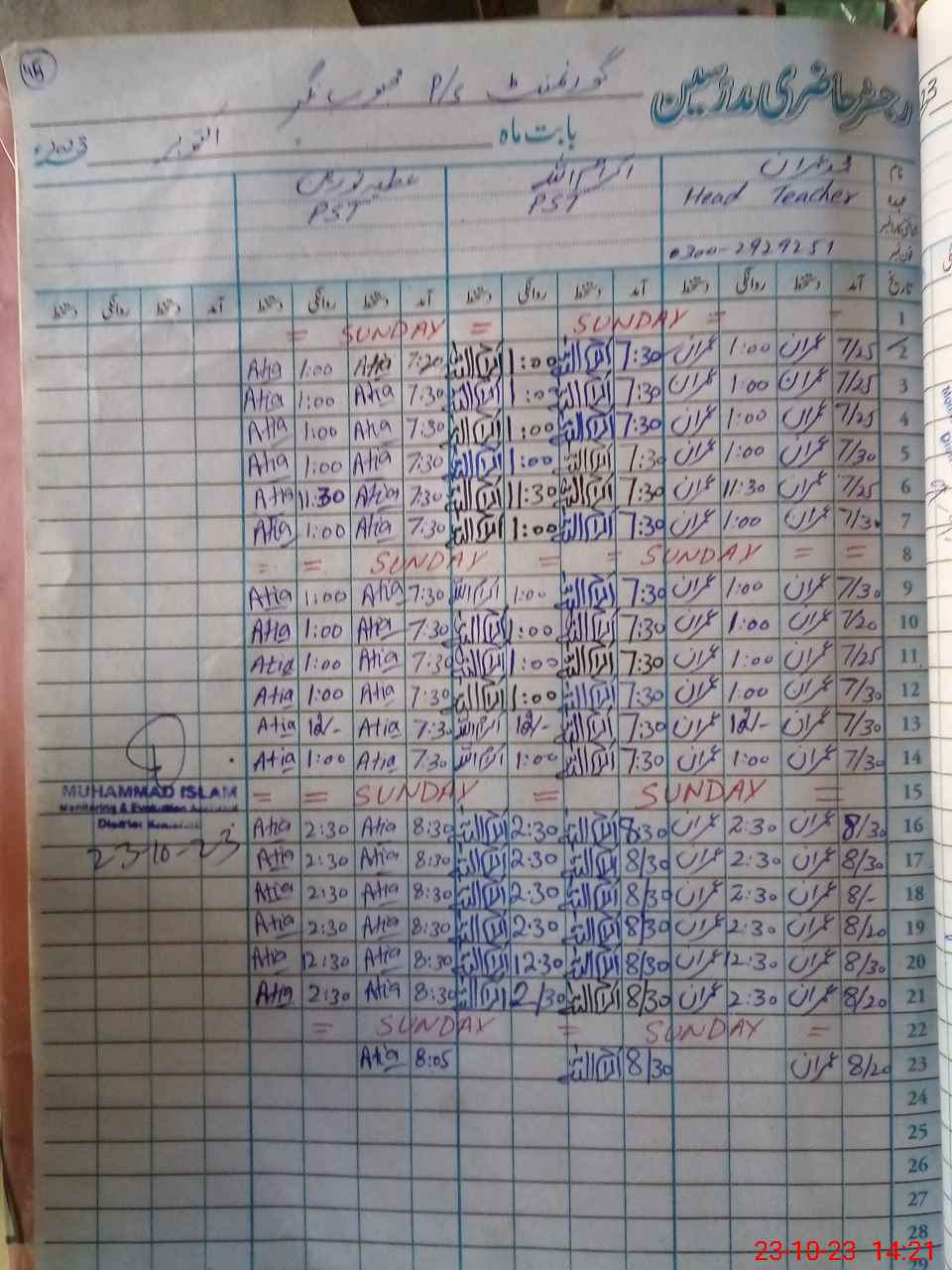| Name: Mu**** Im**** Designation: (School Headmaster's/Headmistress's) PST Phone/Cell Number: 03**** |