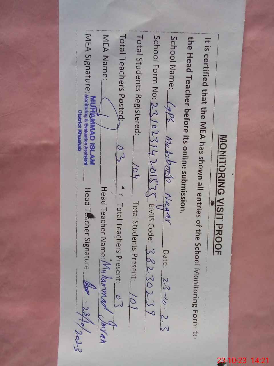 | EMIS Code: 38230239 | Name of School: GPS MEHBOOB NAGAR | |||