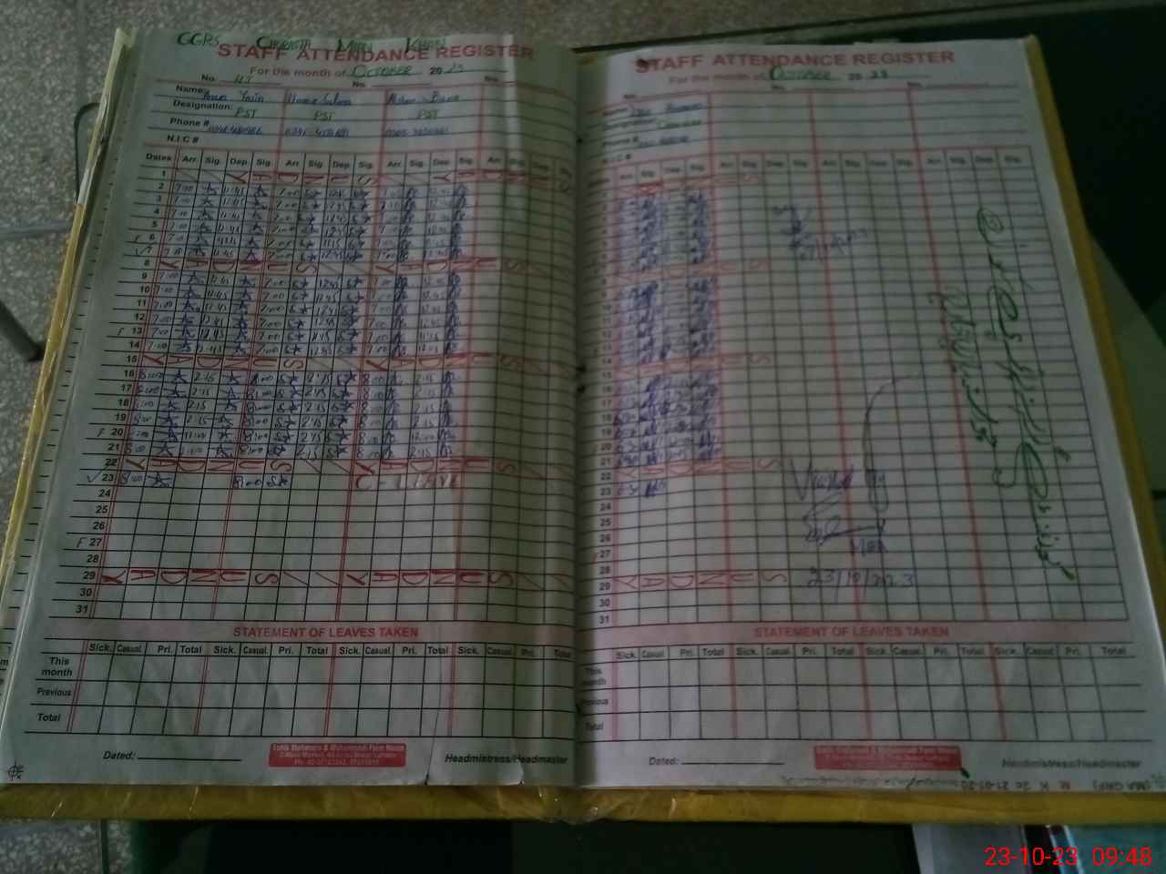 | CNIC | Full Name | Designation | R/C | Absence During Last Calender Month |