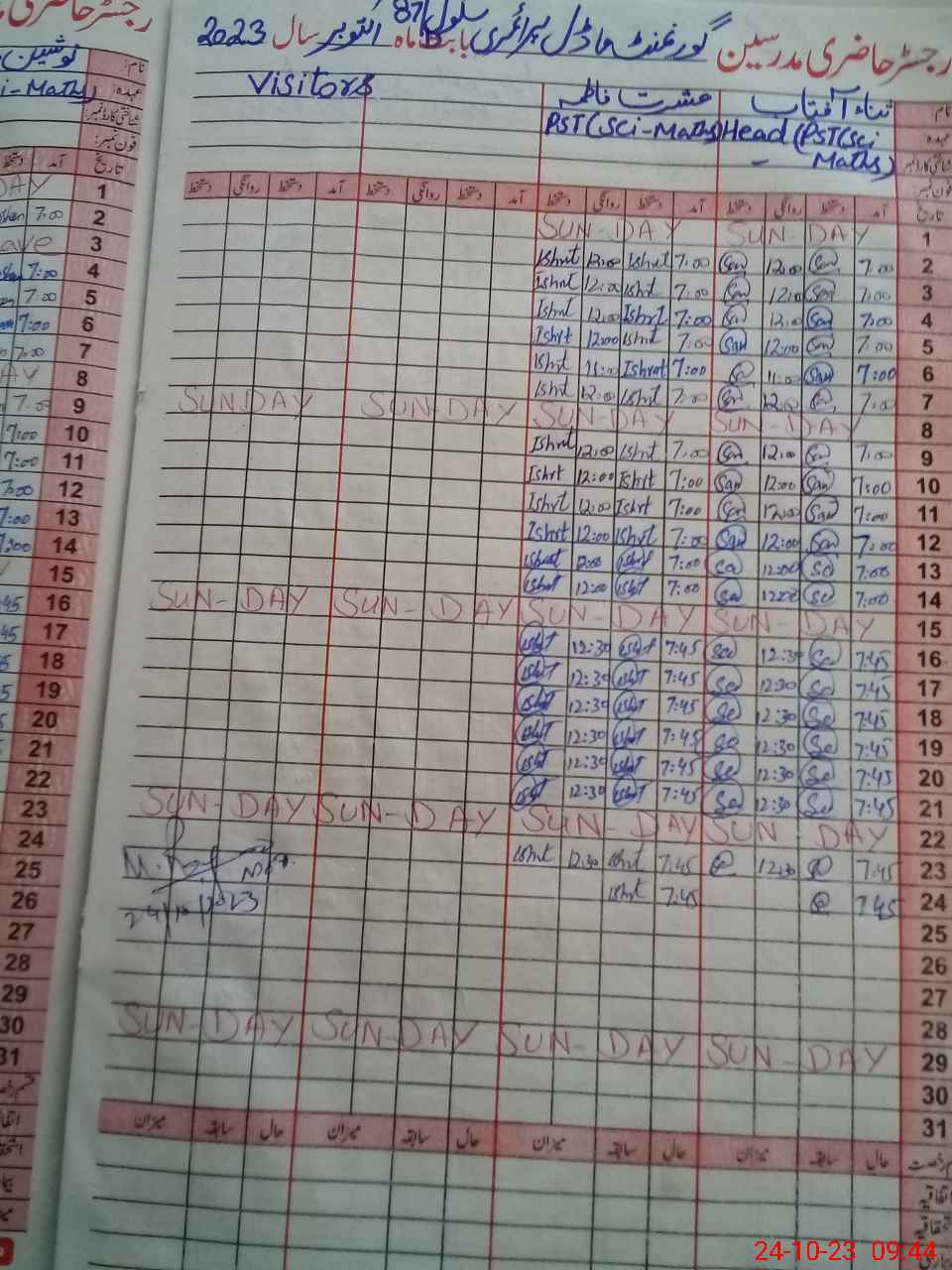 | Remarks (Use Separate Page if Required): Rehan Mehboob SHNS visit school just to sign the attendance register no lecture or any observation | |||||
