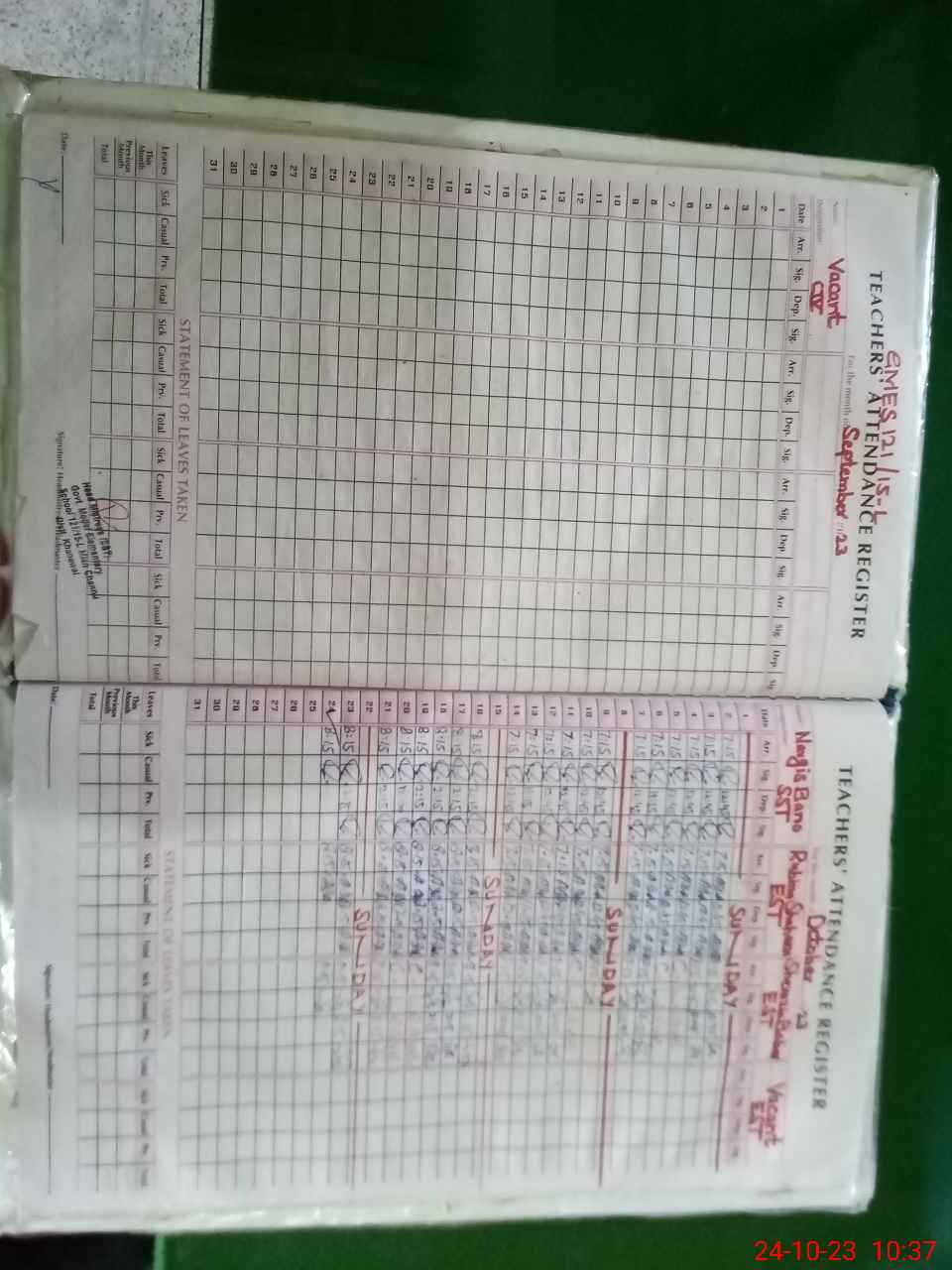 | Name: NA**** BA**** Designation: (School Headmaster's/Headmistress's) S.S.T.(general) Phone/Cell Number: 03**** |