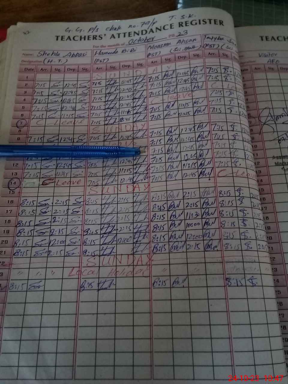 | Name: SH**** AB**** Designation: (School Headmaster's/Headmistress's) PST/PTC/JV Phone/Cell Number: 03**** |