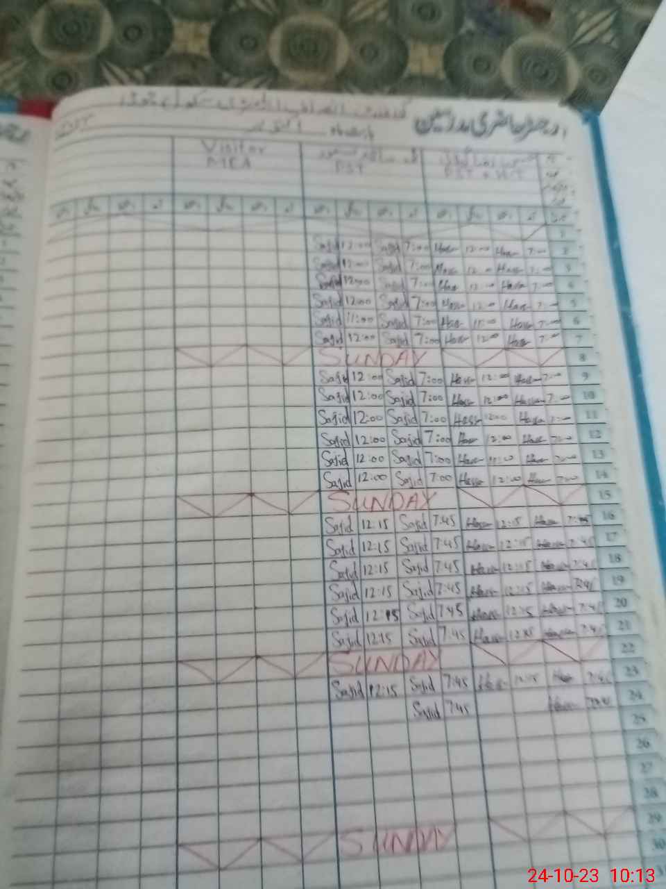 | CNIC | Full Name | Designation | R/C | Absence During Last Calender Month |