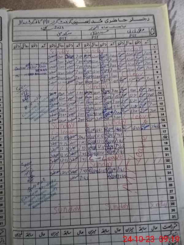 | CNIC | Full Name | Designation | R/C | Absence During Last Calender Month |