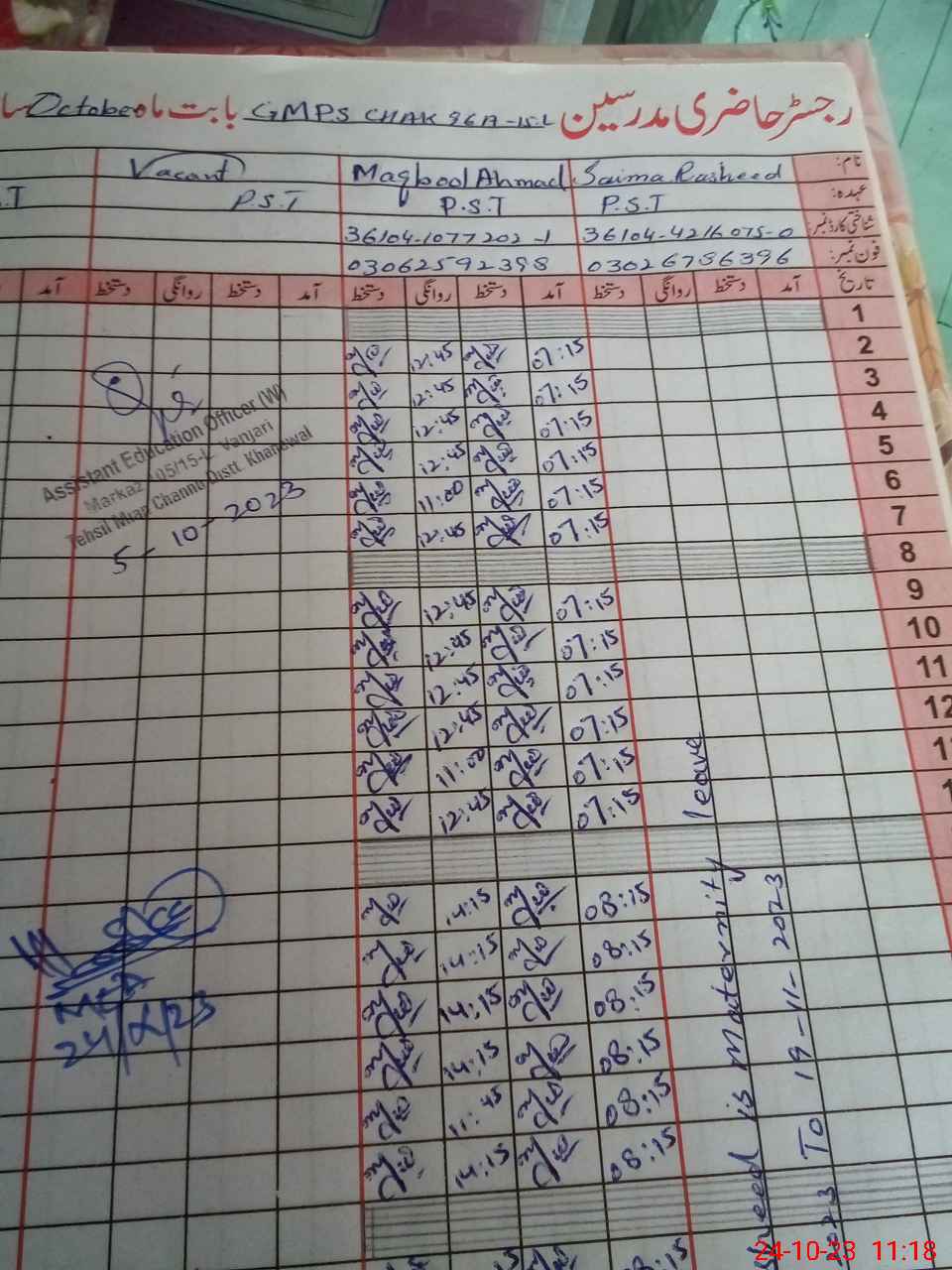| 36**** | Sa**** Ra**** | 1 | 30 | 0 | 0 | 30 | 0 | 0 | 0 | 0 | 0 | Maternity | |