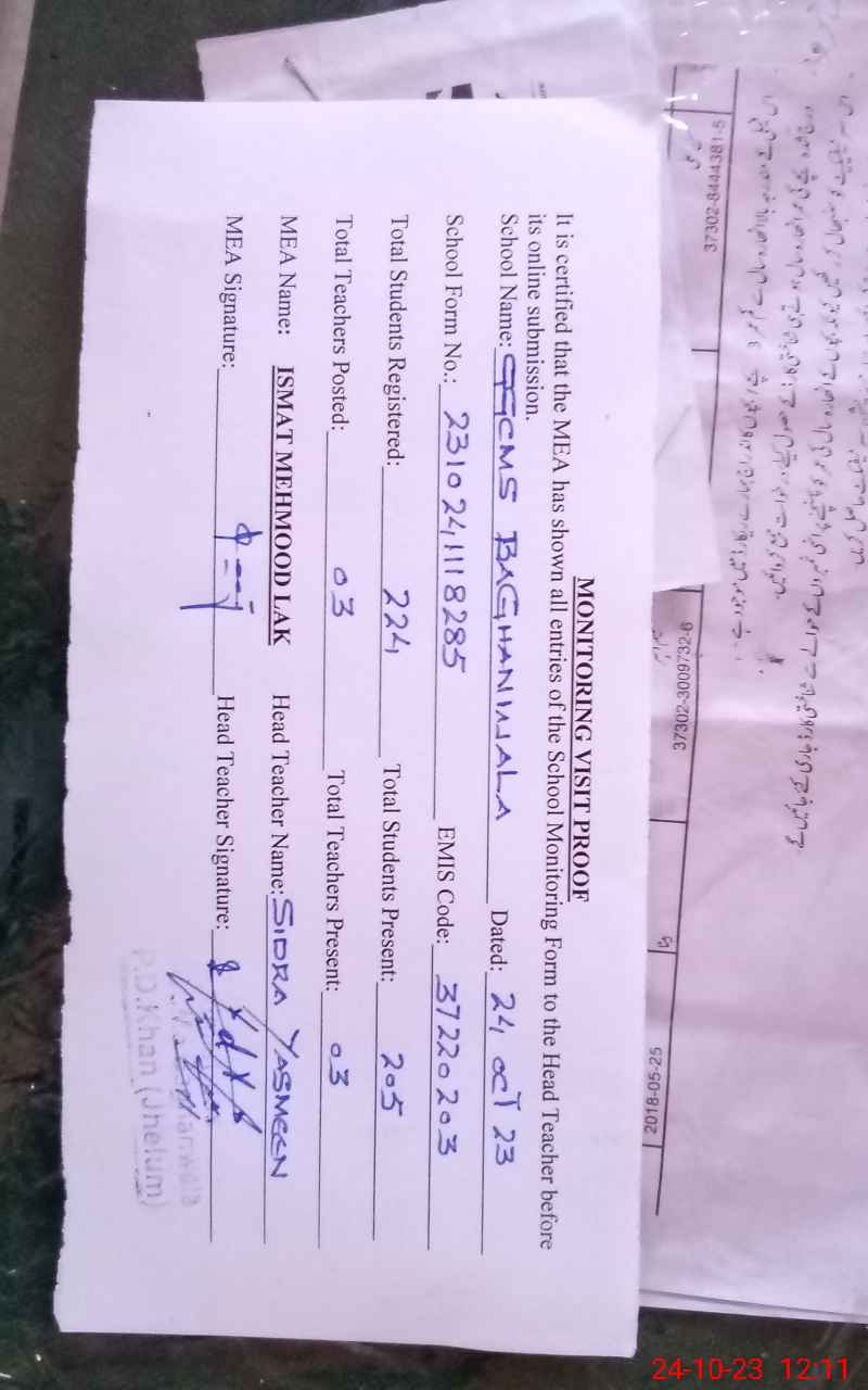 | EMIS Code: 37220203 | Name of School: GGMCMS BAGHAN WALA | |||