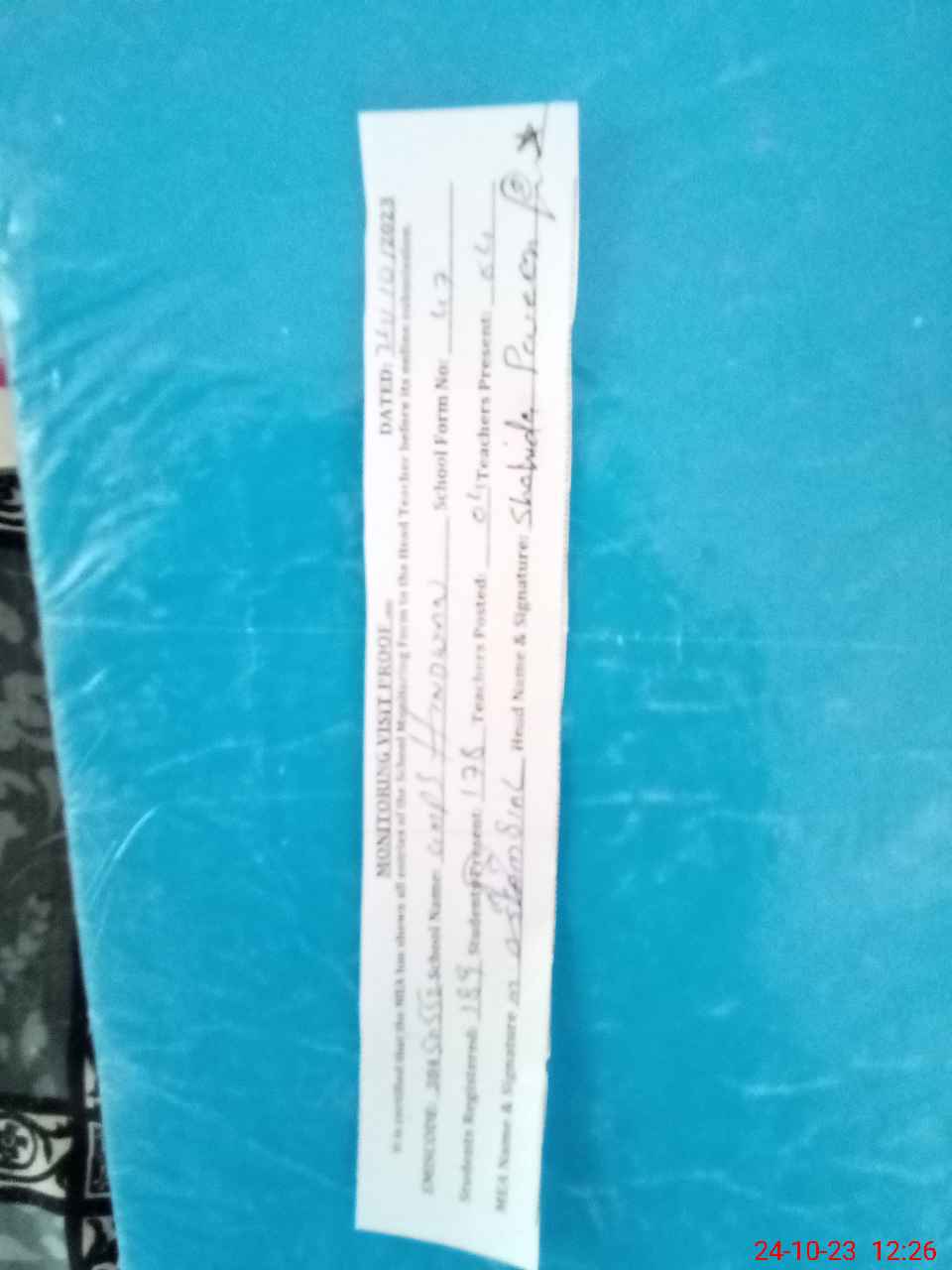 | Name: SH**** PA**** Designation: (School Headmaster's/Headmistress's) PTC/JV Phone/Cell Number: 03**** |