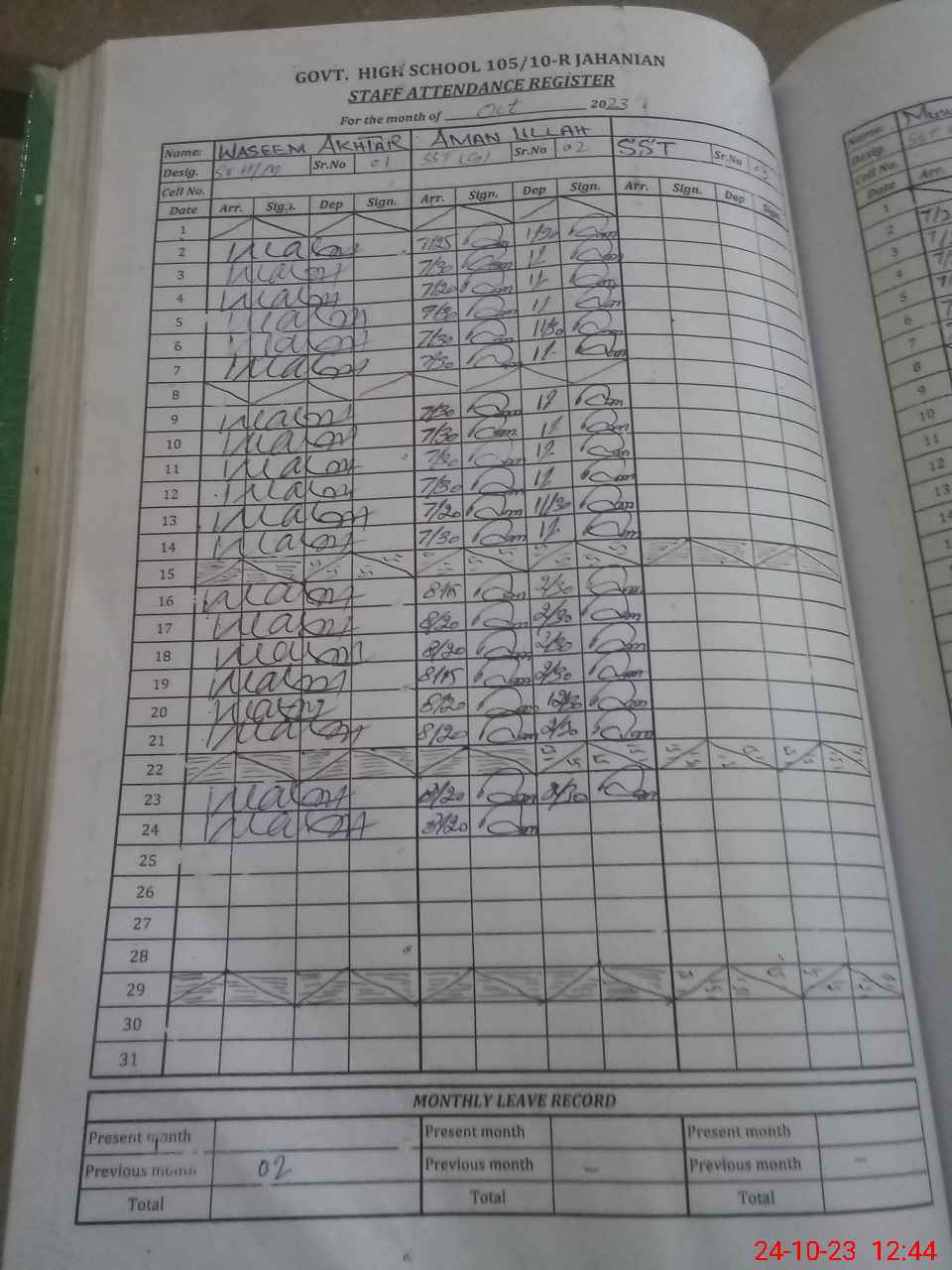 | Leave | Duty | Absent | Maternity | Medical | Ex- Pak |