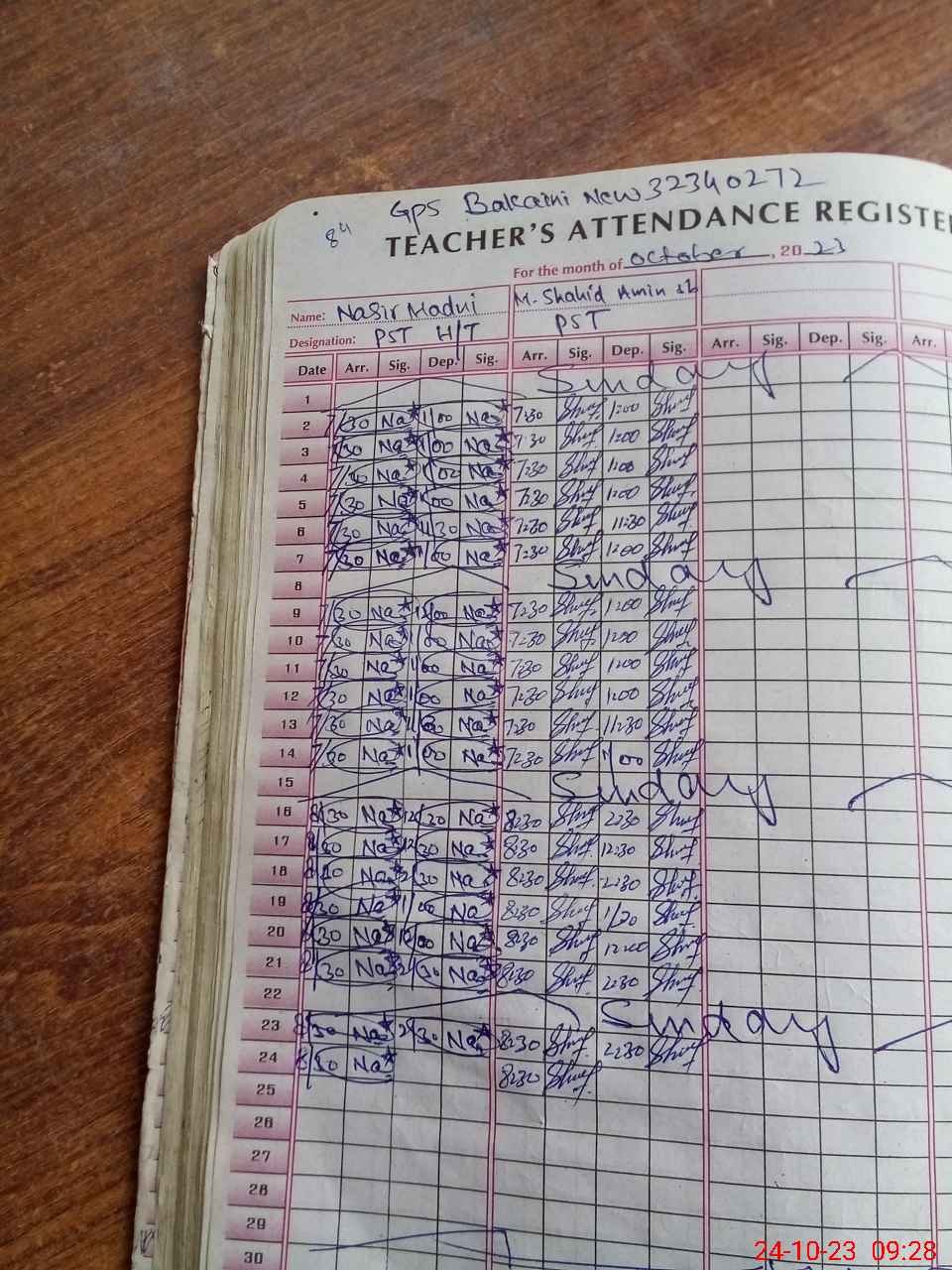 | CNIC | Full Name | Designation | R/C | Absence During Last Calender Month |