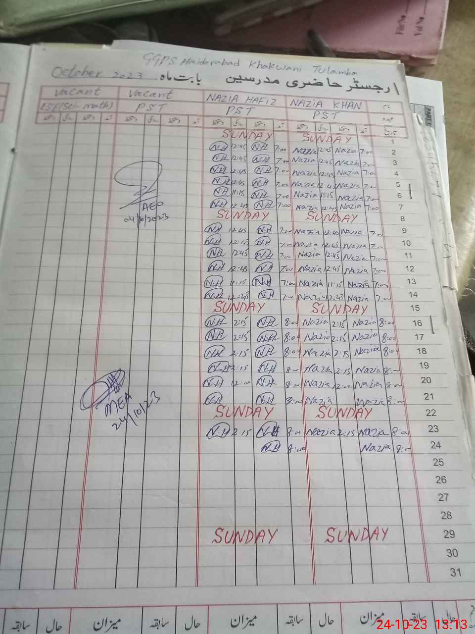 | Name of AEO: | AEO Contact No.: | MEA Phone#: 03**** | ||