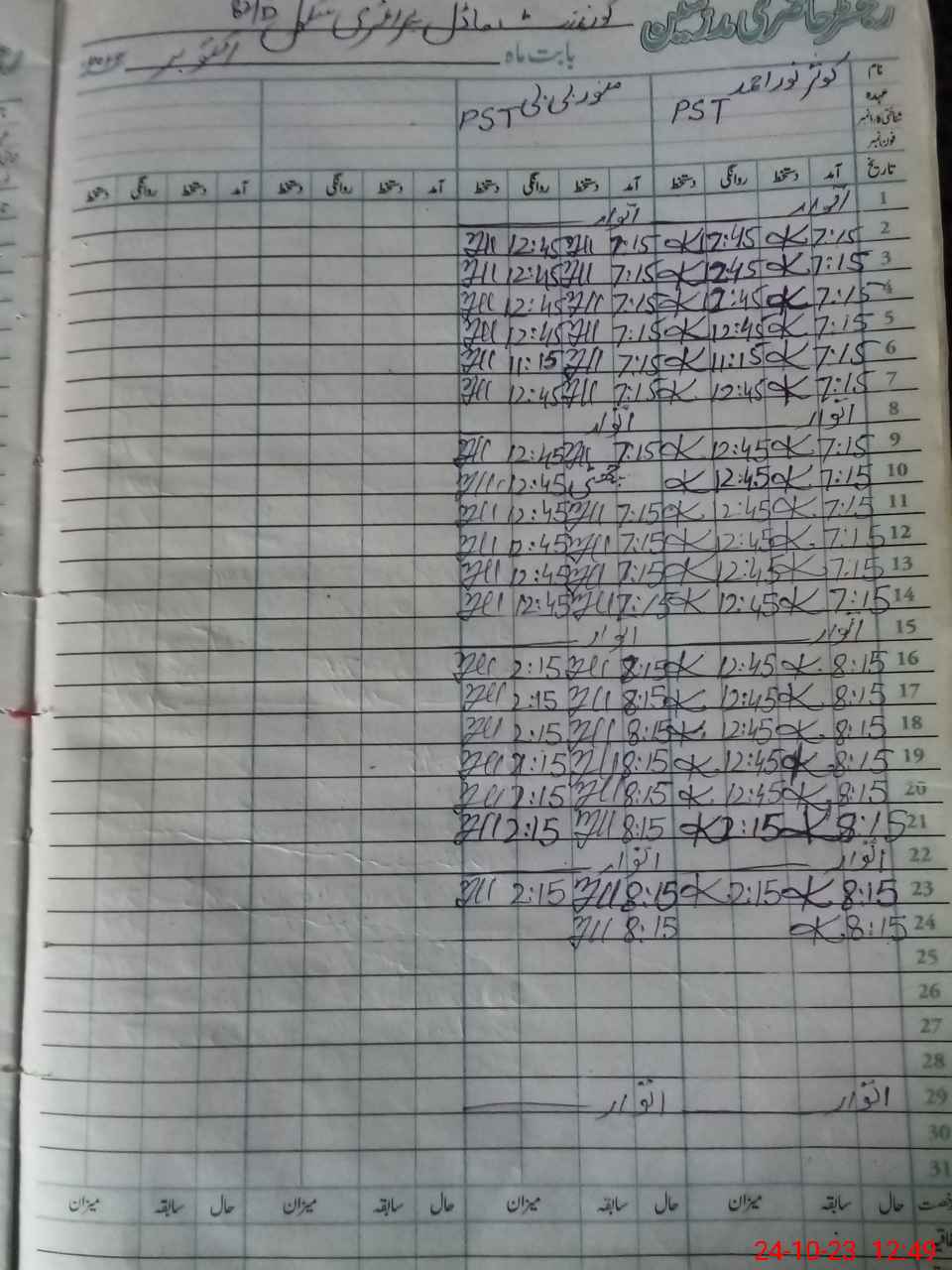 | CNIC | Full Name | Designation | R/C | Absence During Last Calender Month |