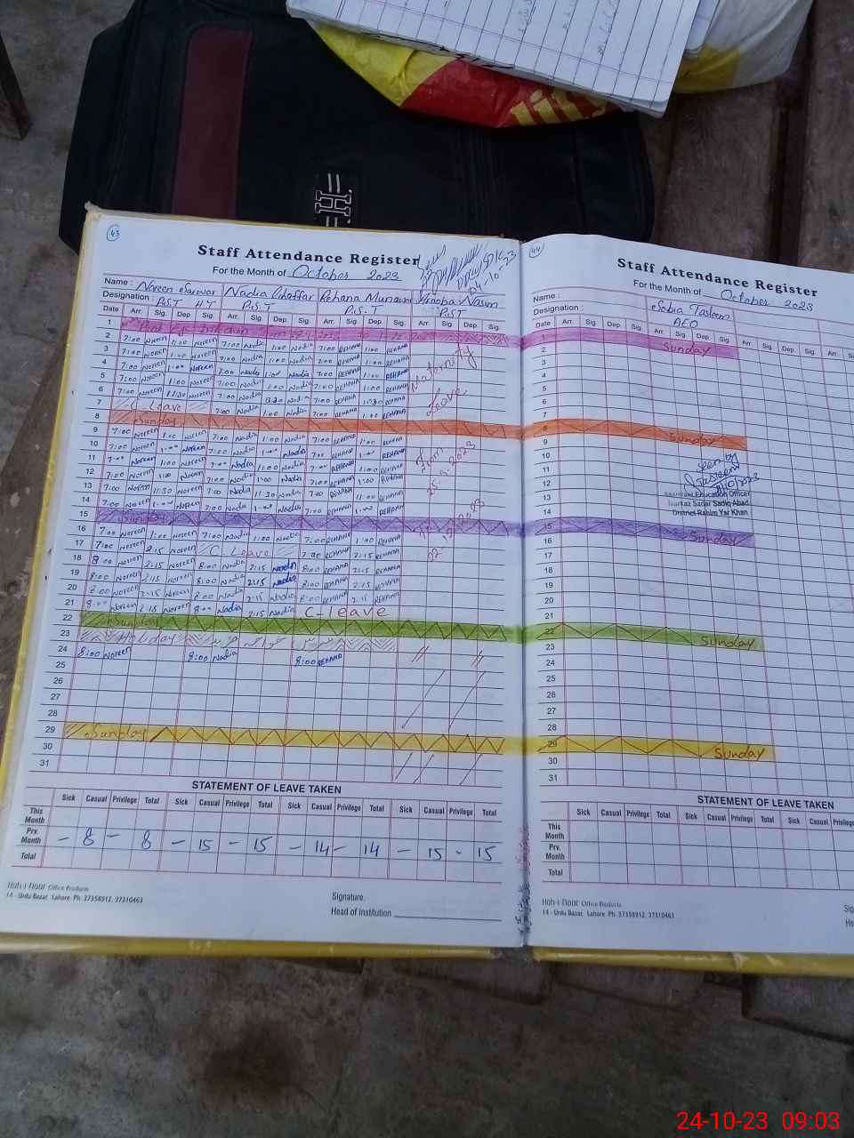 | Leave | Duty | Absent | Maternity | Medical | Ex- Pak |