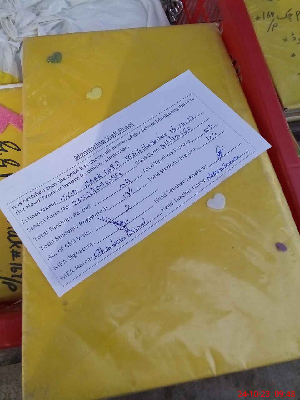 | Attendance Register | Head Teacher | MEA with School | Visit Proof |