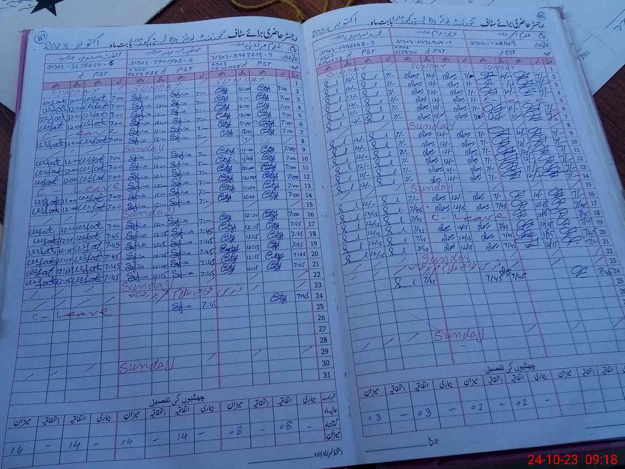 | CNIC | Full Name | Designation | R/C | Absence during last cal. month |