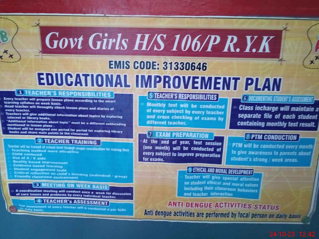 | EMIS Code: 31330646 | Name of School: GGHS 106/P R.Y.KHAN | |||
