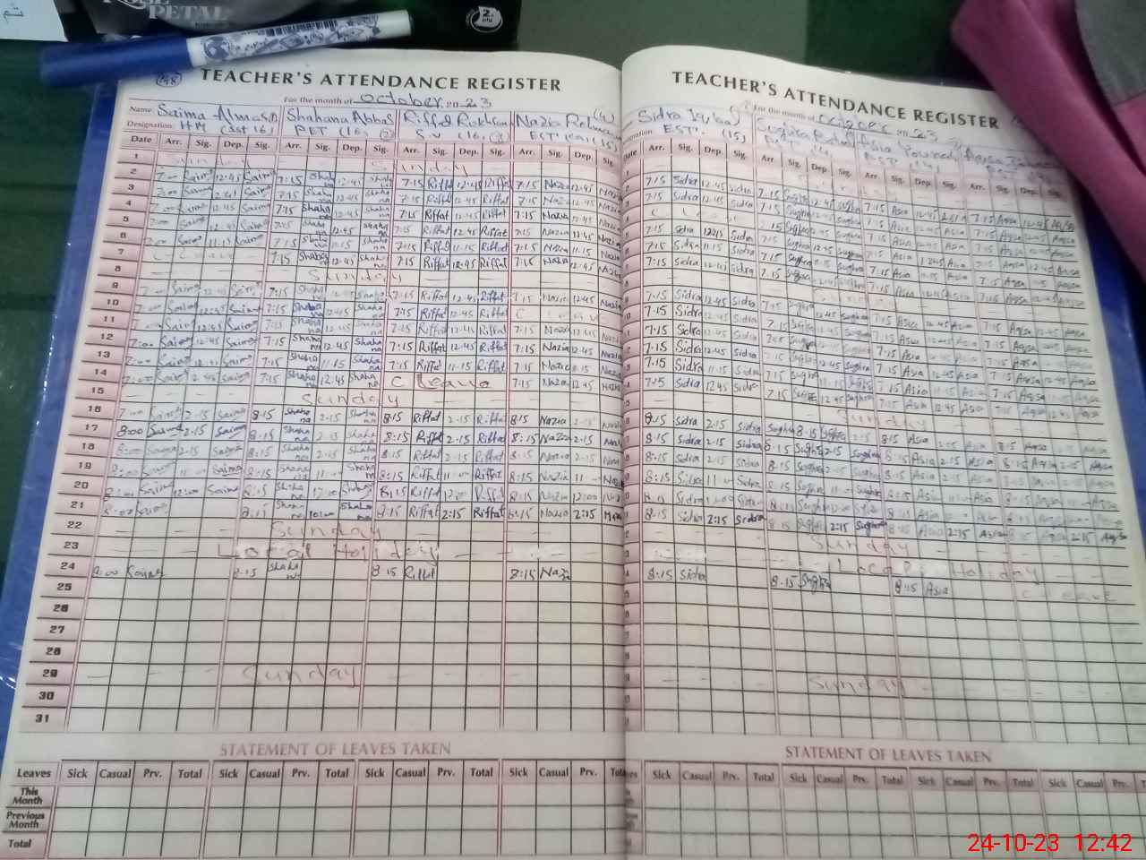 | Leave | Duty | Absent | Maternity | Medical | Ex- Pak |