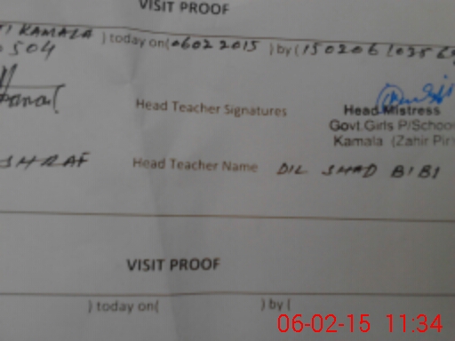 | School Visited by School Health & Nutrition Supervisor (No. of Visits) | 1 | Name1: | M Javed | Name2: | |