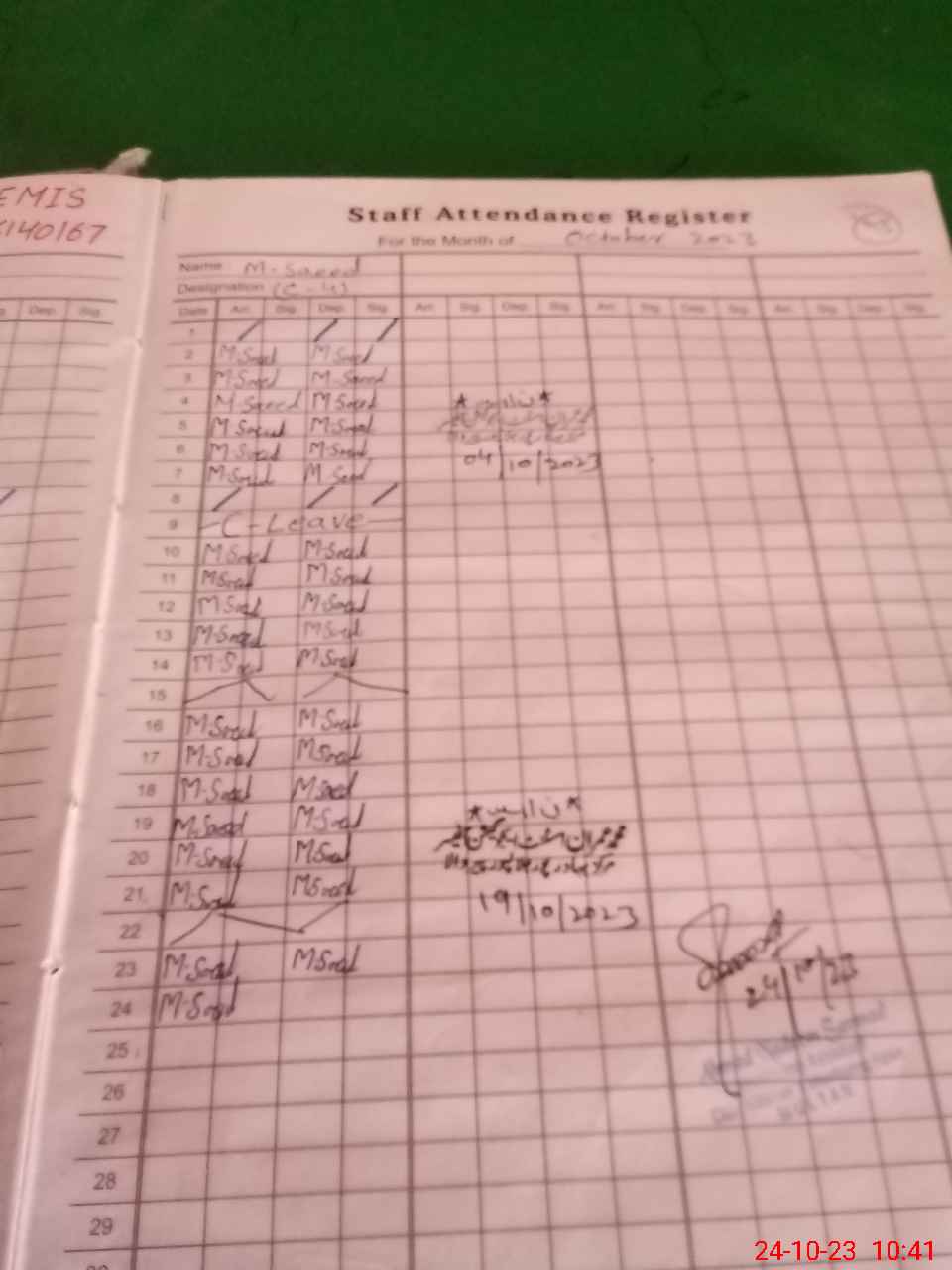 | Leave | Duty | Absent | Maternity | Medical | Ex- Pak |