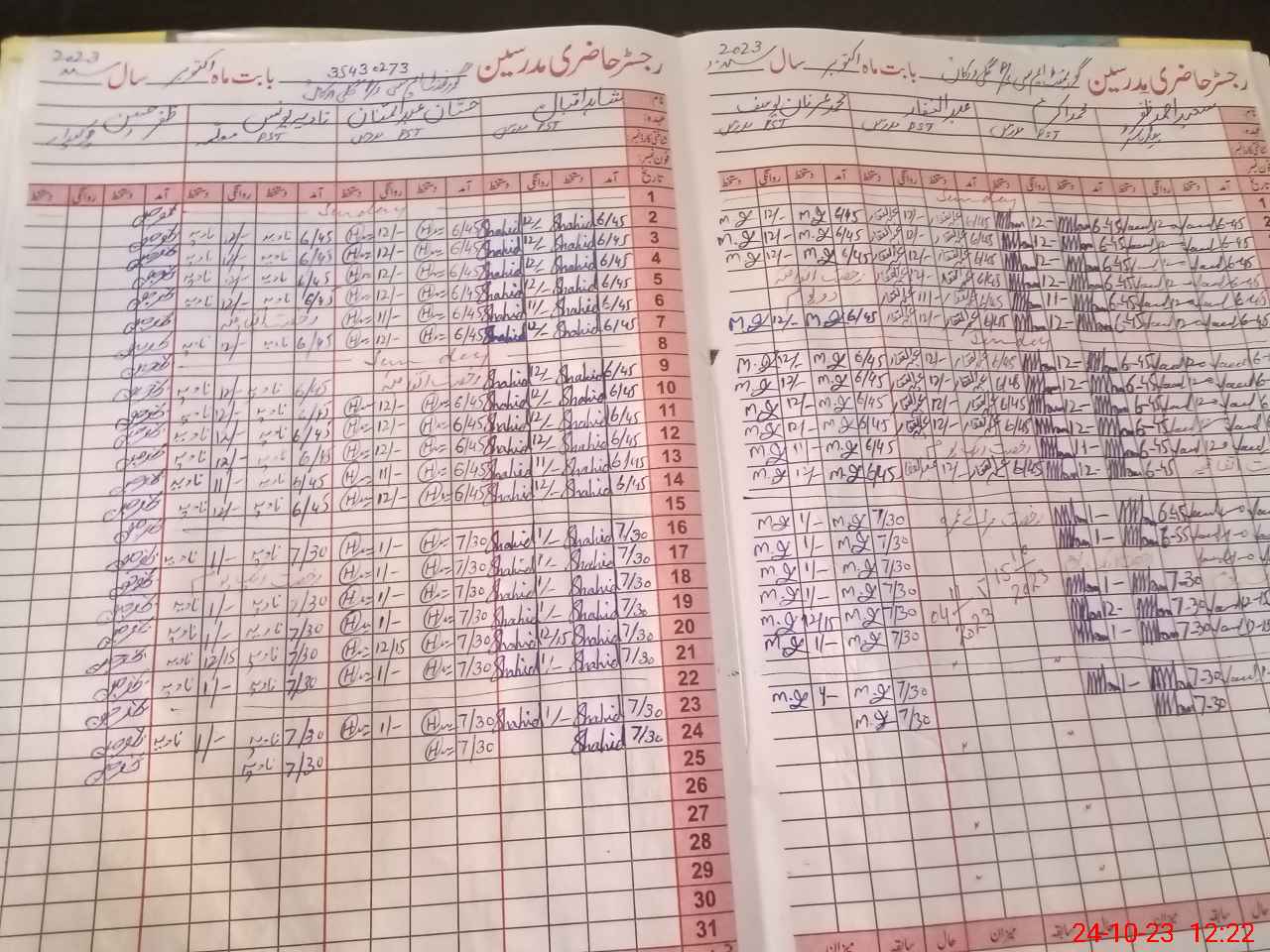 | CNIC | Full Name | Designation | R/C | Absence During Last Calender Month |