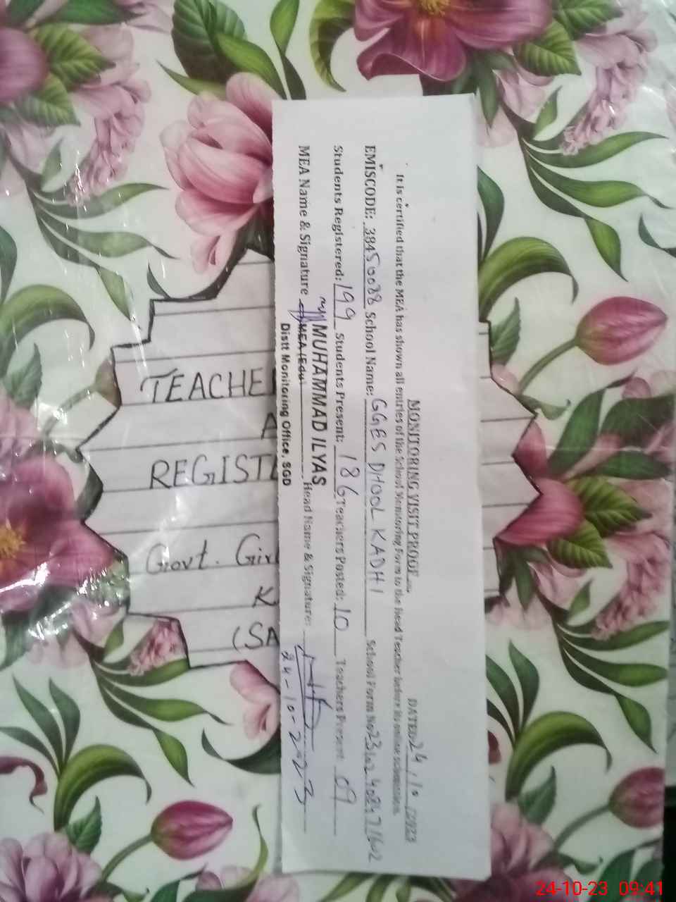 | Certified that this School was Inspected by the Undersigned MEA/DMO Today and the Information Stated Above is as Per Record. | |||||