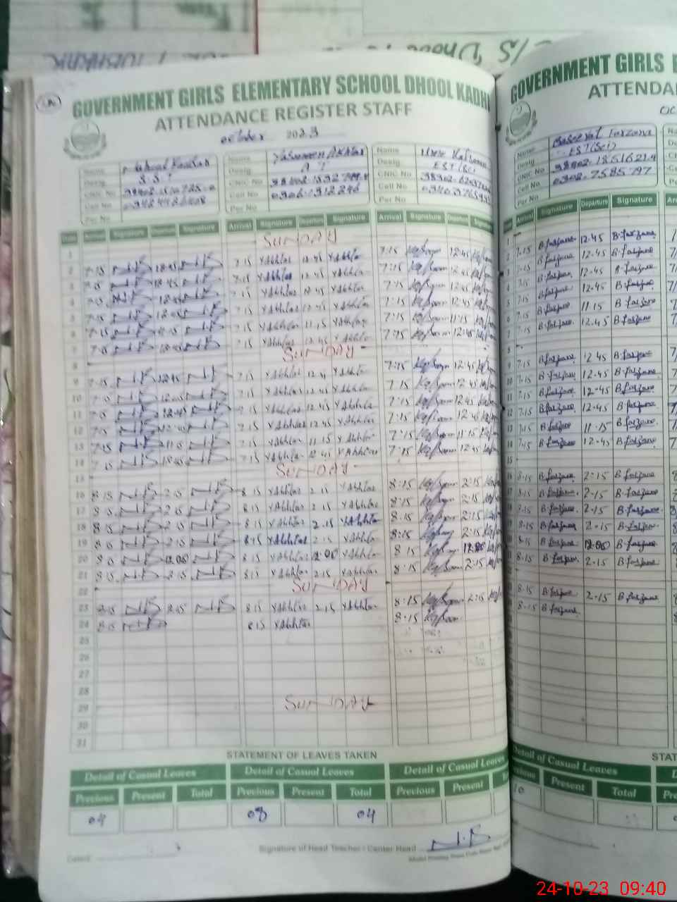| CNIC | Full Name | Designation | R/C | Absence During Last Calender Month |