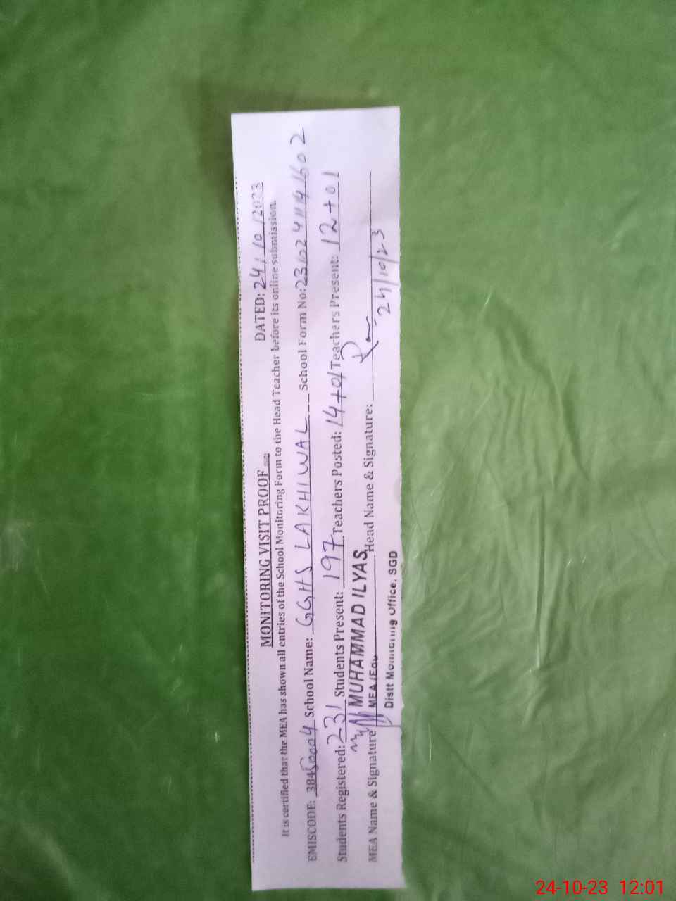 | EMIS Code: 38450004 | Name of School: GGHS LAKHI WAL | |||
