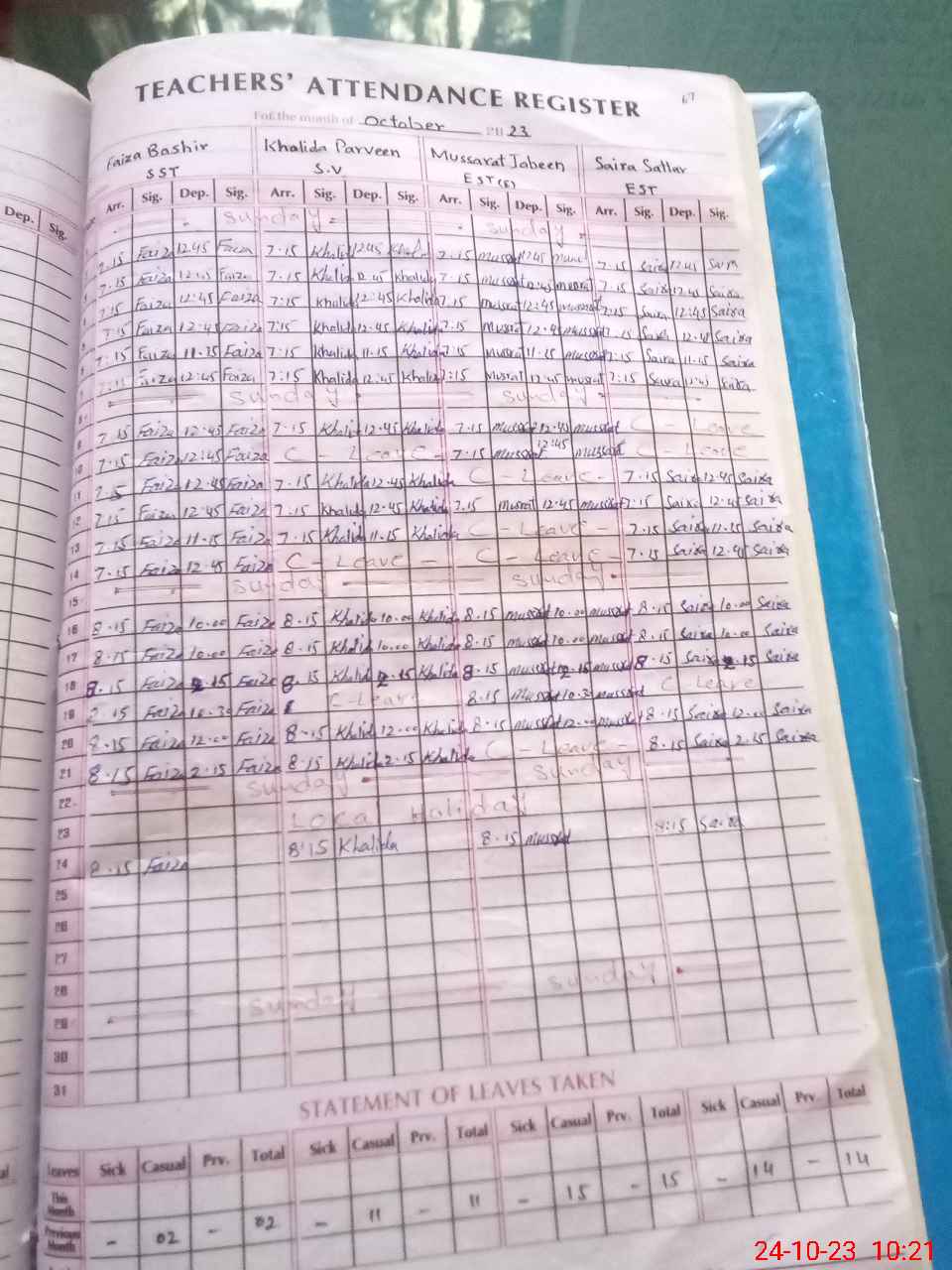 | 31**** | Sa**** Na**** | 3 | 1 | 0 | 0 | 0 | 0 | 0 | 0 | 0 | 0 | 0 | Maternity |
