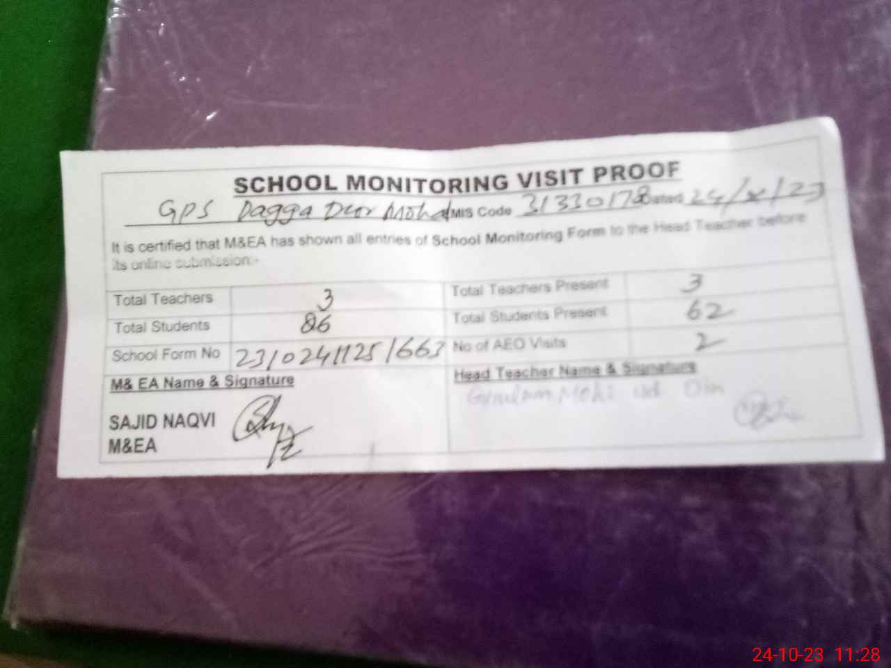 | EMIS Code: 31330178 | Name of School: GPS DAGGA DUR MUHAMMAD | |||