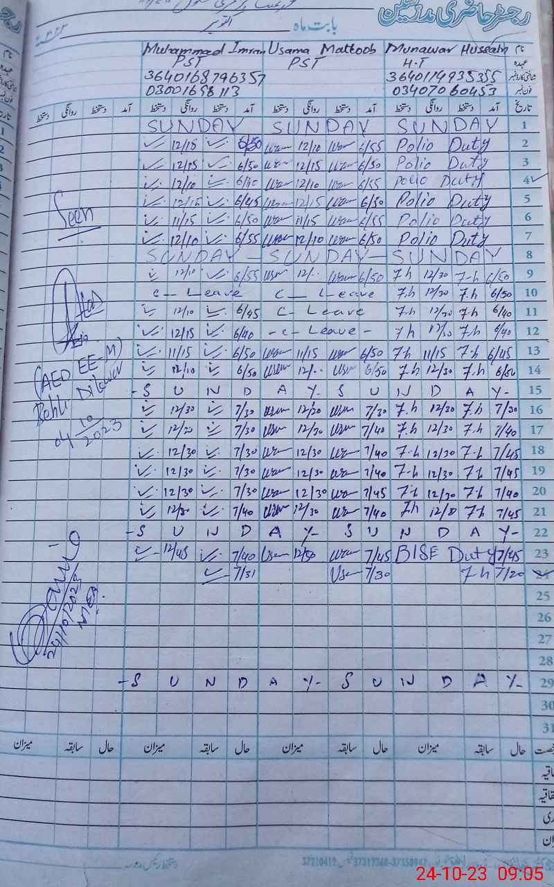 | Name: MU**** IM**** Designation: (School Headmaster's/Headmistress's) PST Phone/Cell Number: 03**** |