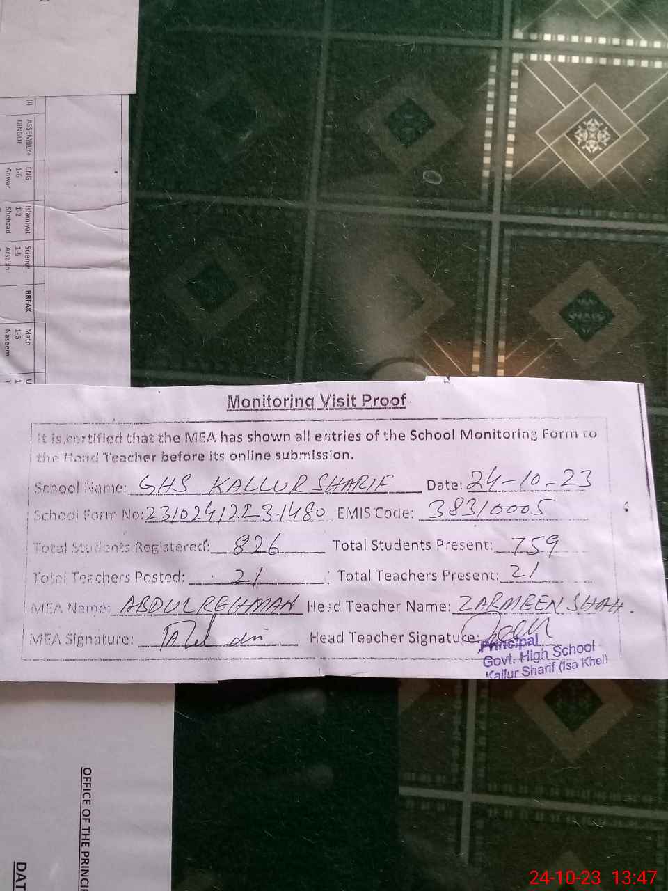 | EMIS Code: 38310005 | Name of School: GHS KALLOR SHARIF | |||