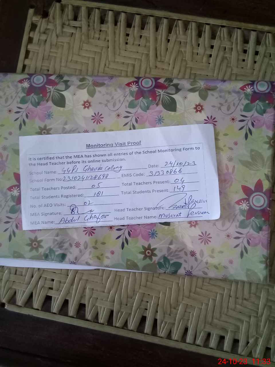 | Attendance Register | Head Teacher | MEA with School | Visit Proof |