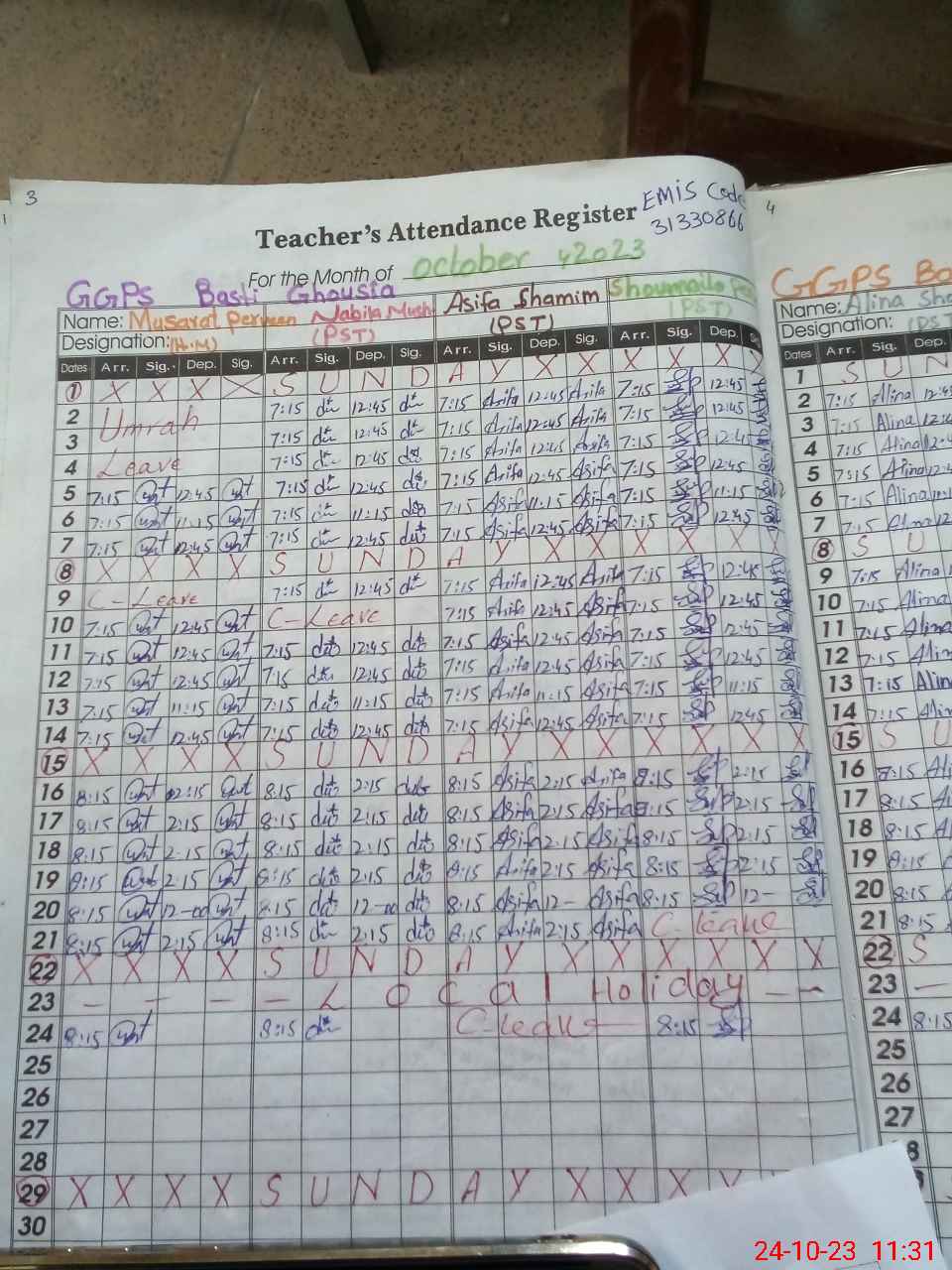 | Leave | Duty | Absent | Maternity | Medical | Ex- Pak |