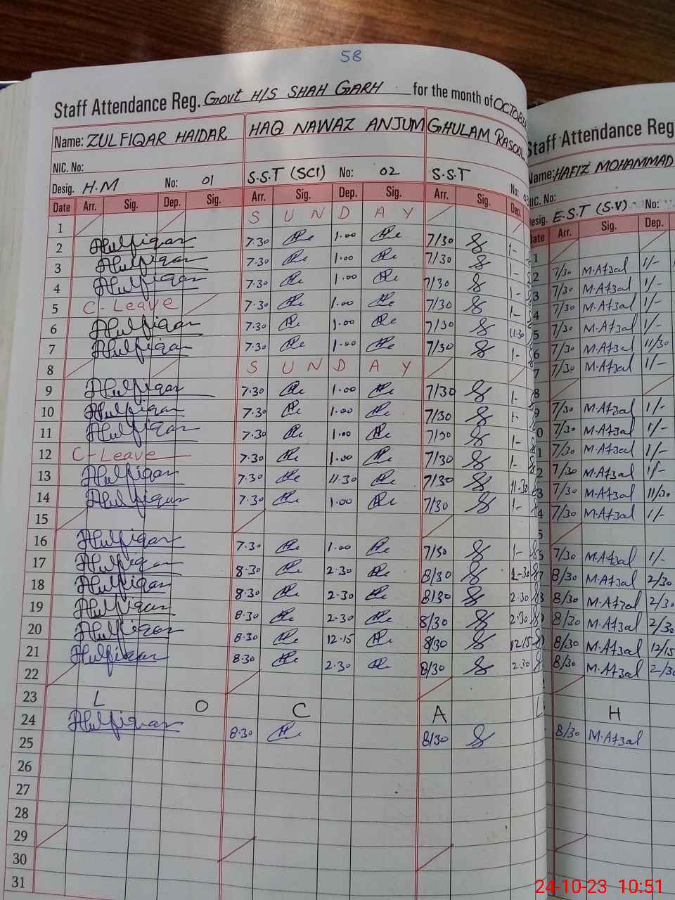 | CNIC | Full Name | Designation | R/C | Absence during last cal. month |