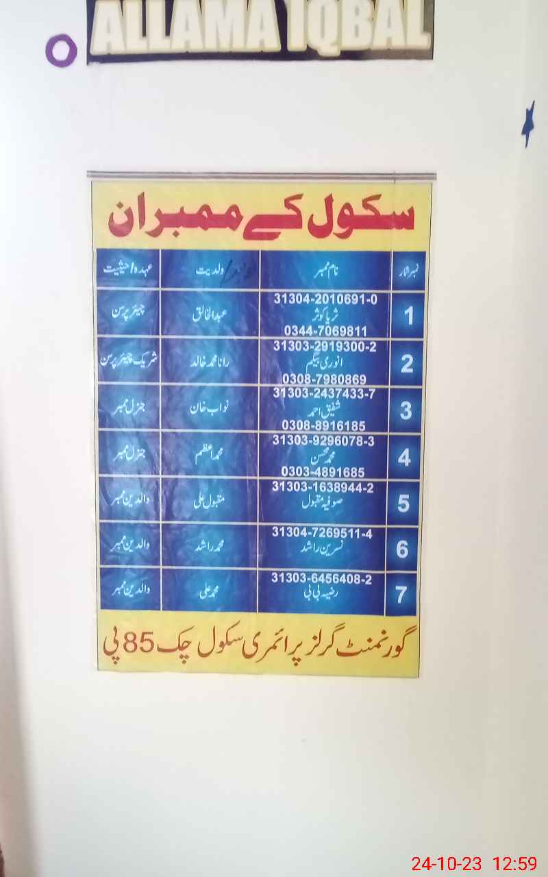 | EMIS Code: 31330741 | Name of School: GGPS CHAK NO. 85/P | |||