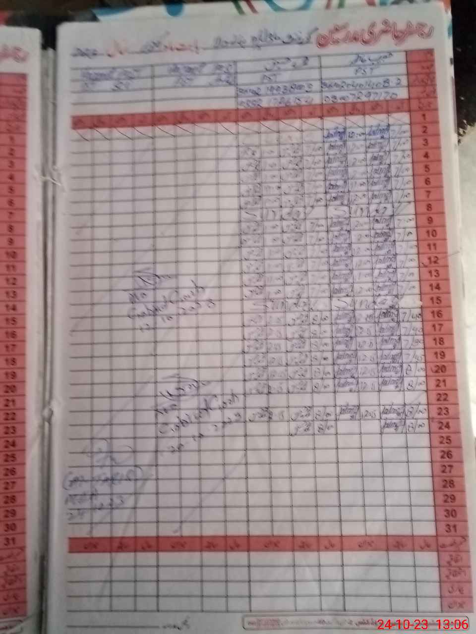| CNIC | Full Name | Designation | R/C | Absence During Last Calender Month |