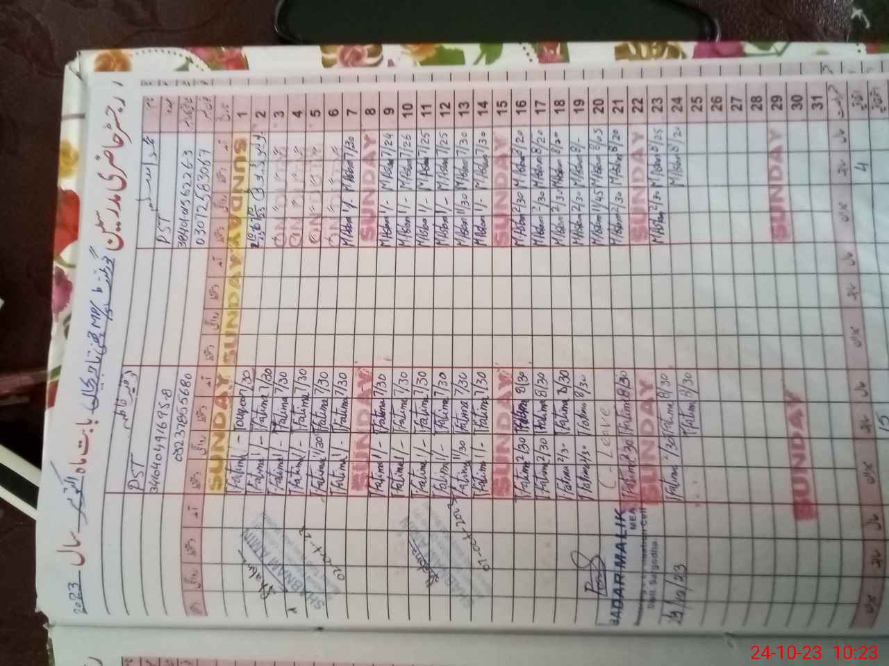 | Name: Mu**** As**** Designation: (School Headmaster's/Headmistress's) P S T Phone/Cell Number: 03**** |
